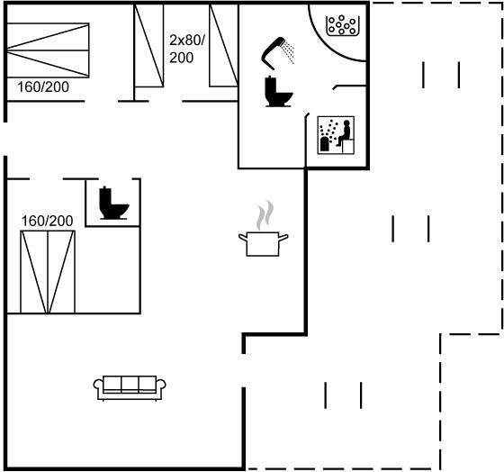 Der er i alt 3 soveværelser. Sovepladserne fordeler sig på: 4 sovepladser i dobbeltsenge. 2 sovepladser i enkeltsenge.