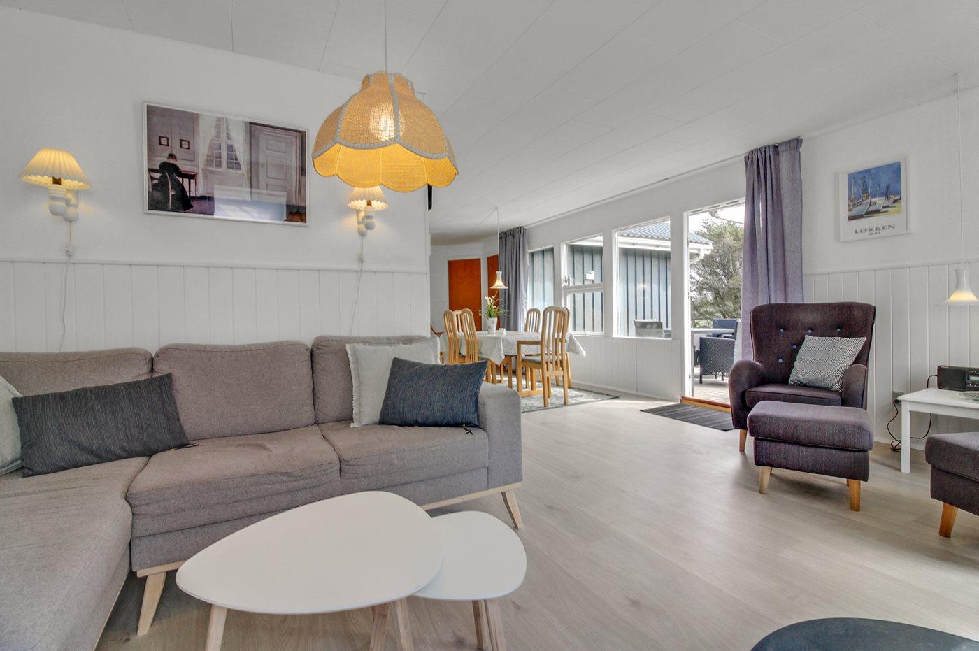 Hyggeligt sommerhus beliggende på dejlig, delvis lukket grund i roligt feriehusområde tæt den skønne, brede sandstrand og i gåafstand til Løkken centrum.