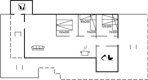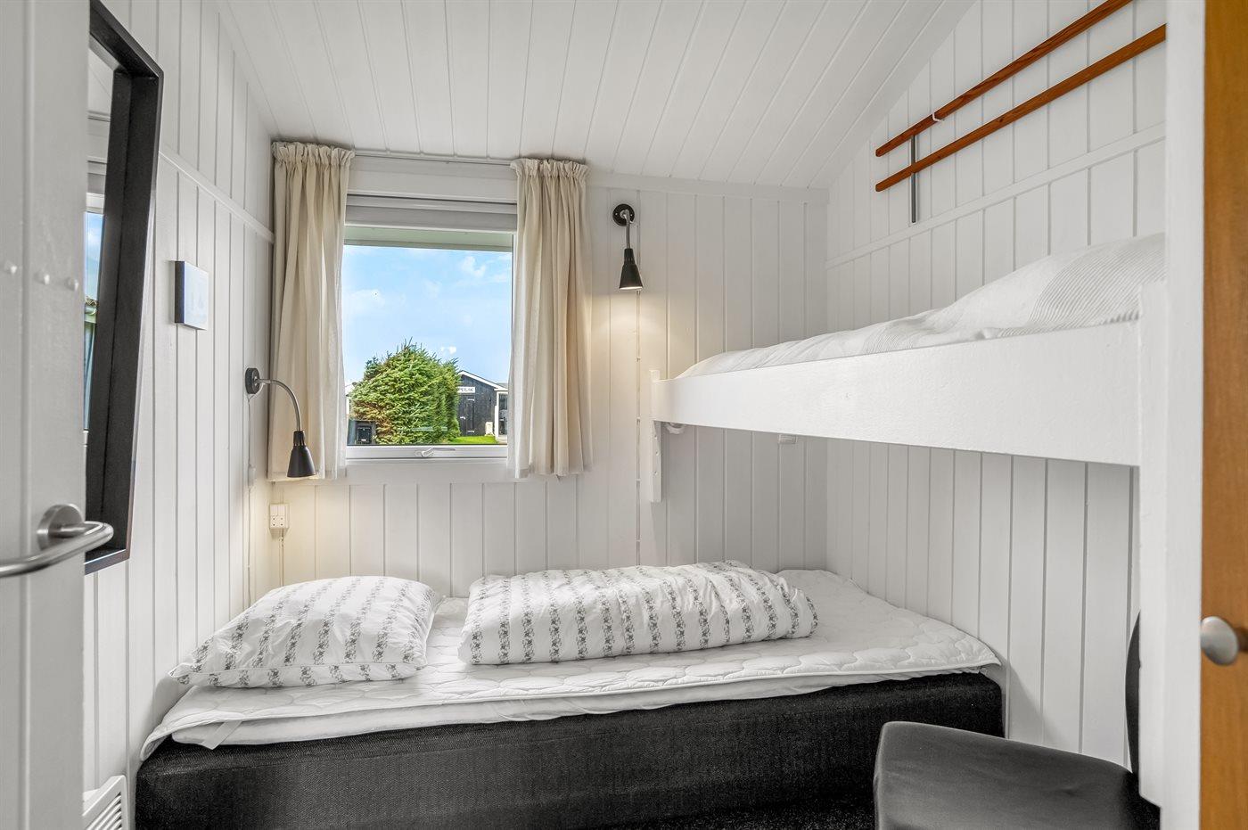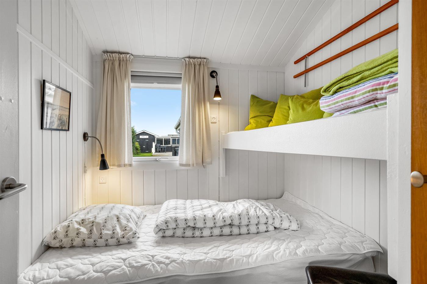 Der er i alt 3 soveværelser. Sovepladserne fordeler sig på: 2 sovepladser i dobbeltseng. 2 sovepladser i enkeltsenge. 2 sovepladser i køjeseng.