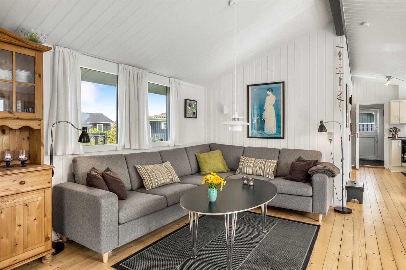 Et klassisk, hyggeligt sommerhus, der ligger nord for Løkken by. Dette er huset til den lille familie, der gerne vil have en hyggelig ferie, uden dikkedarer.