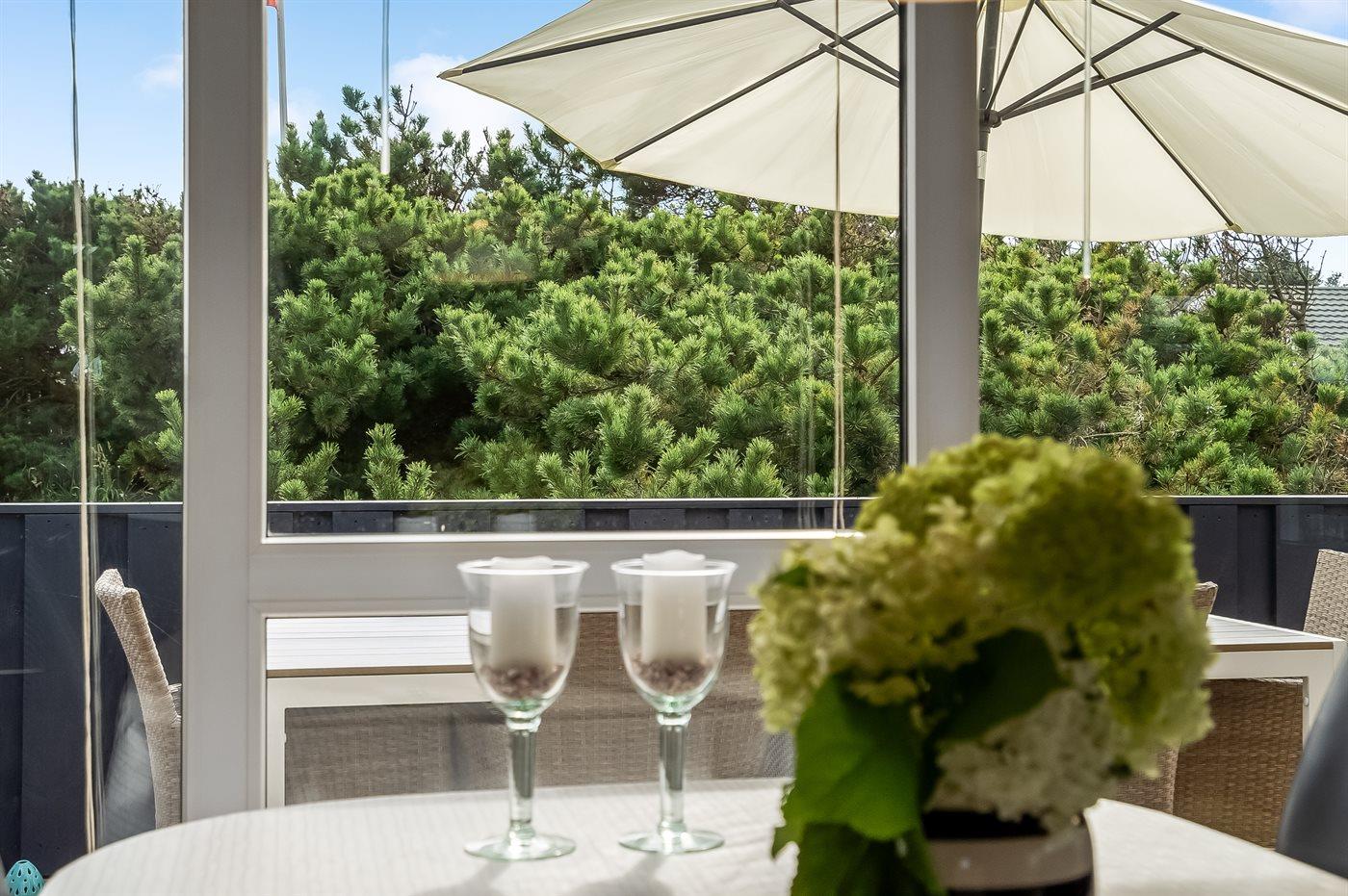 Ferieboligen er beliggende på en 841 m² stor naturgrund. Der er 400 m til havet. Nærmeste forretning er beliggende i en afstand af 700 m. Til ferieboligen hører 38 m² terrasseareal. Desuden er der 4 m² overdækket terrasse. Der er redskabsrum. Parkering ved ferieboligen.