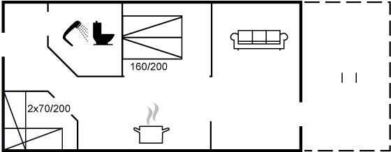 Der er i alt 1 soveværelse. Sovepladserne fordeler sig på: 2 sovepladser i dobbeltseng. 2 sovepladser i enkeltsenge.