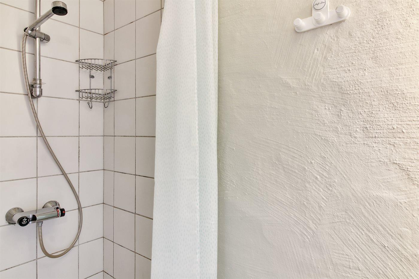 Der er 1 badeværelse med bruseniche og 1 toilet.