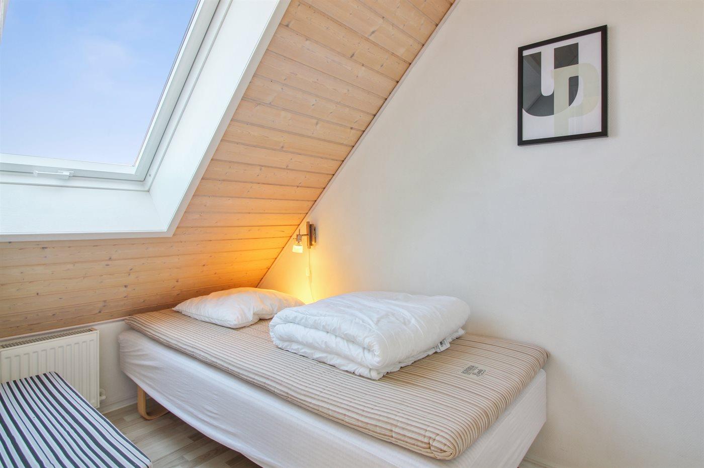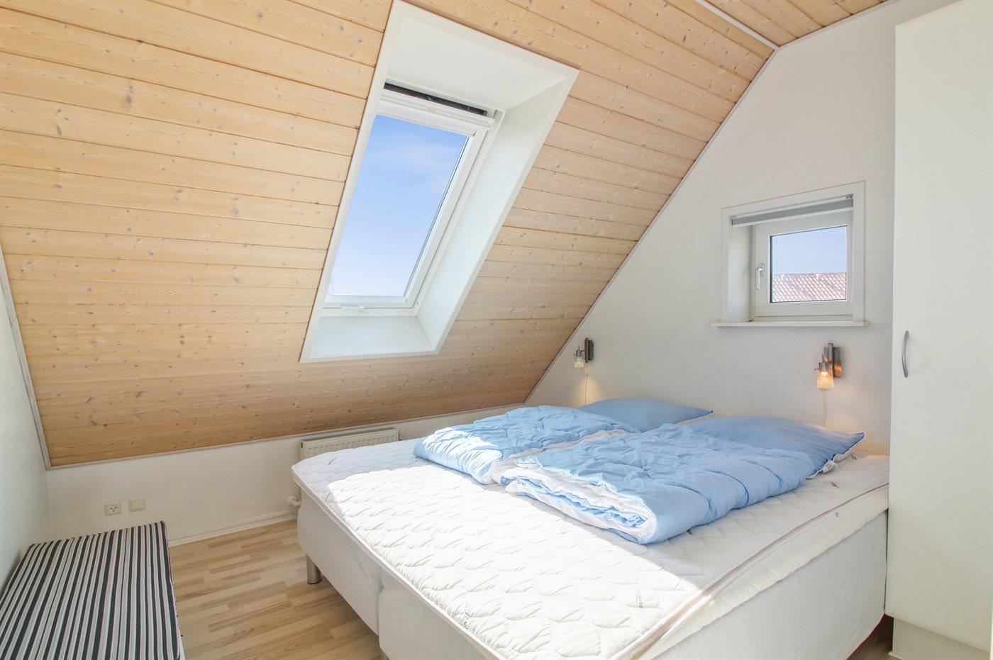 Der er i alt 3 soveværelser. Sovepladserne fordeler sig på: 2 sovepladser i dobbeltseng. 2 sovepladser i enkeltsenge.
