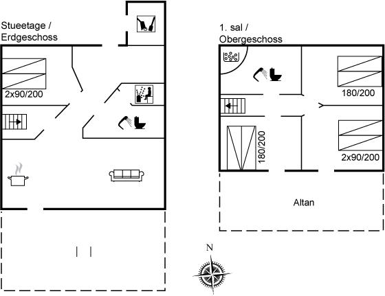 Der er i alt 4 soveværelser. Sovepladserne fordeler sig på: 4 sovepladser i dobbeltsenge. 4 sovepladser i enkeltsenge.