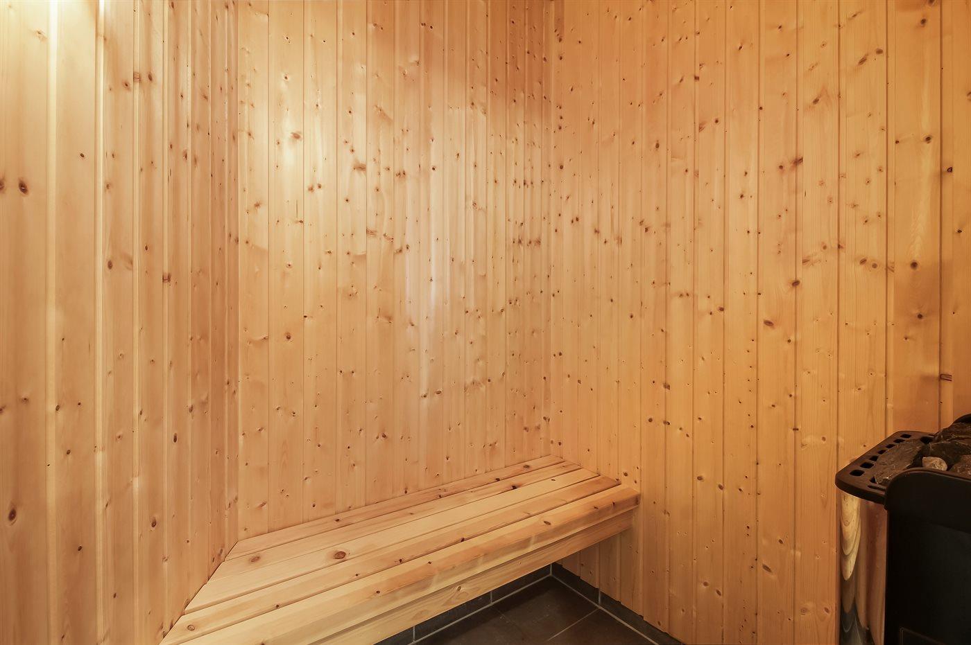 Der er 2 badeværelser med bruseniche og 2 toiletter. Der er gulvvarme på 2 badeværelser. I saunaen er der mulighed for afslapning.