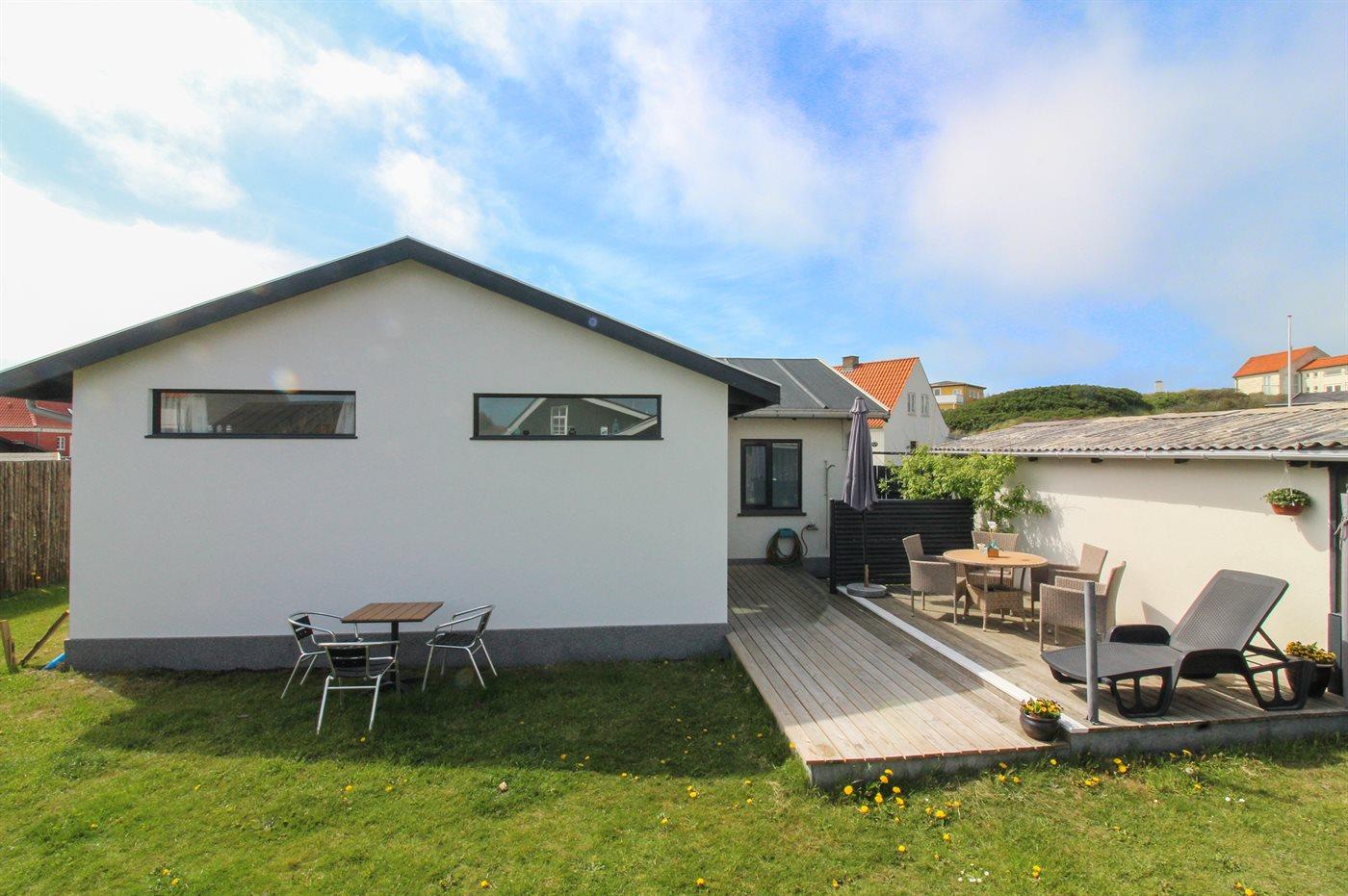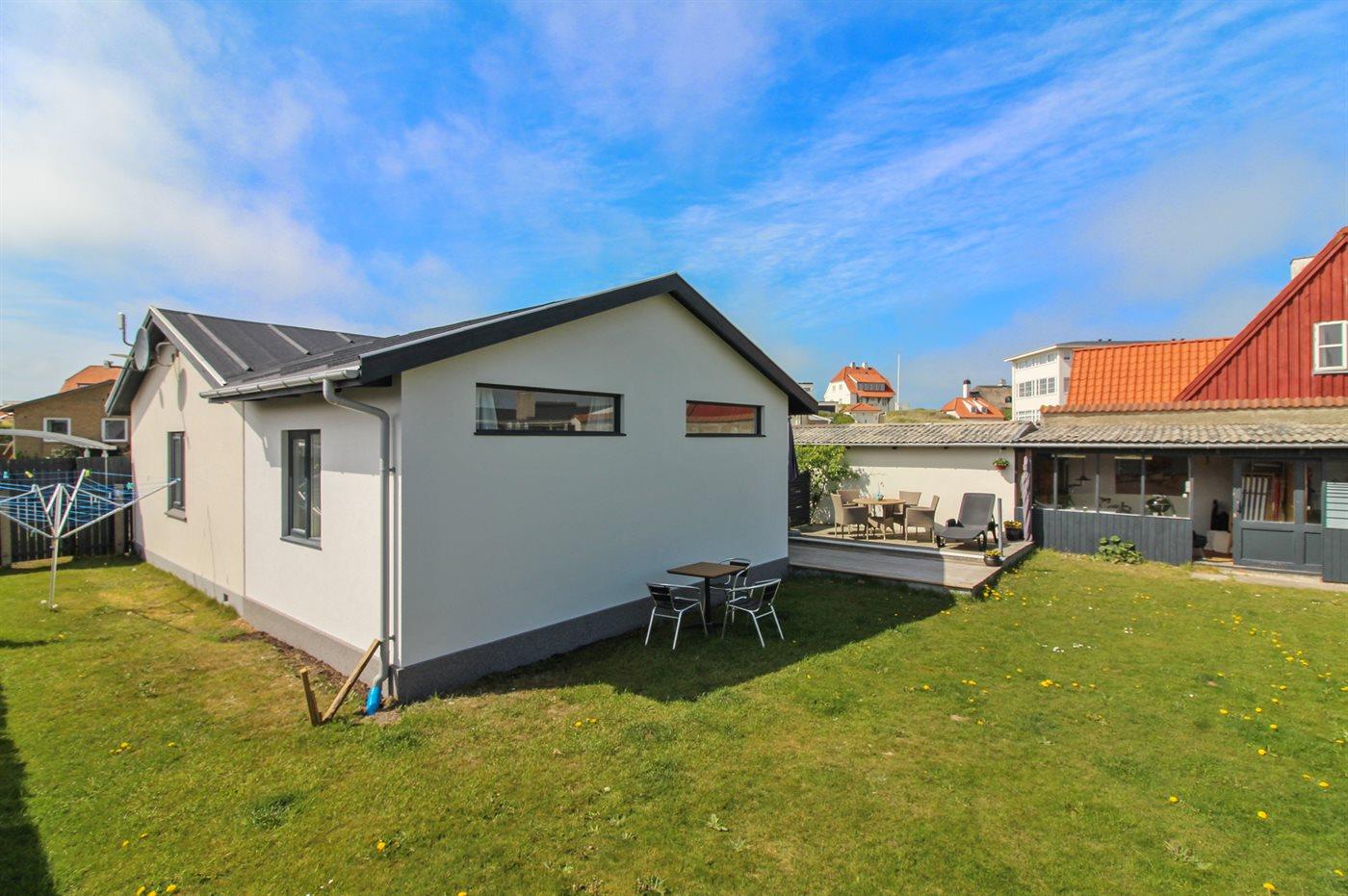 Hyggeligt ældre byhus i Løkken med tæt havn, moderniseret og velegnet til familier og kæledyr.