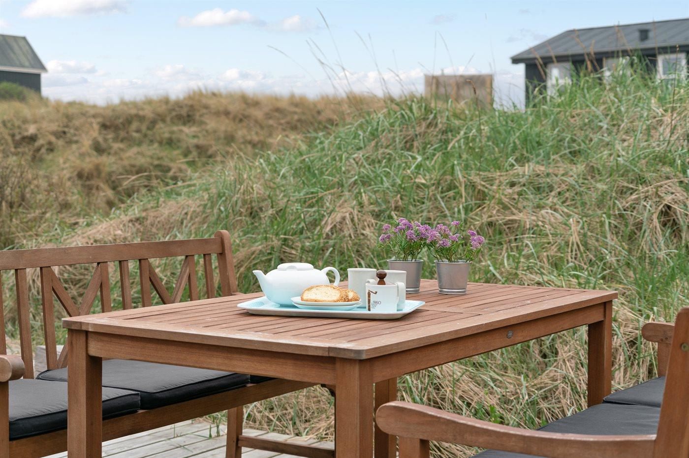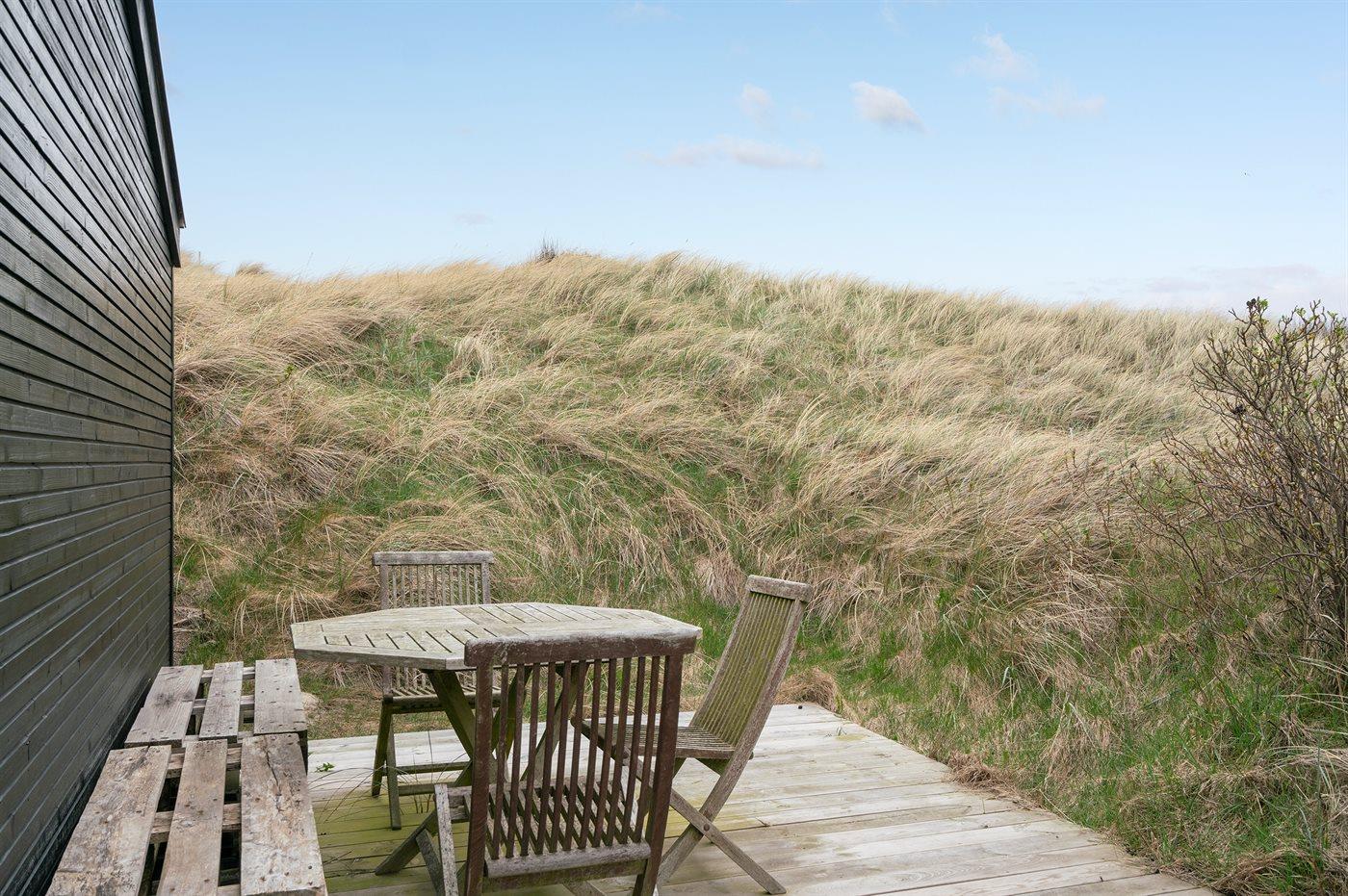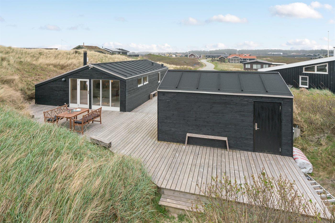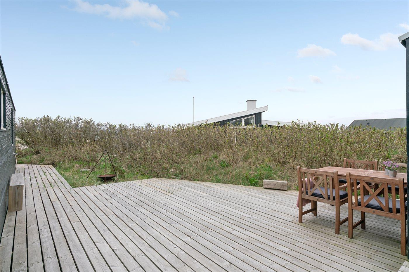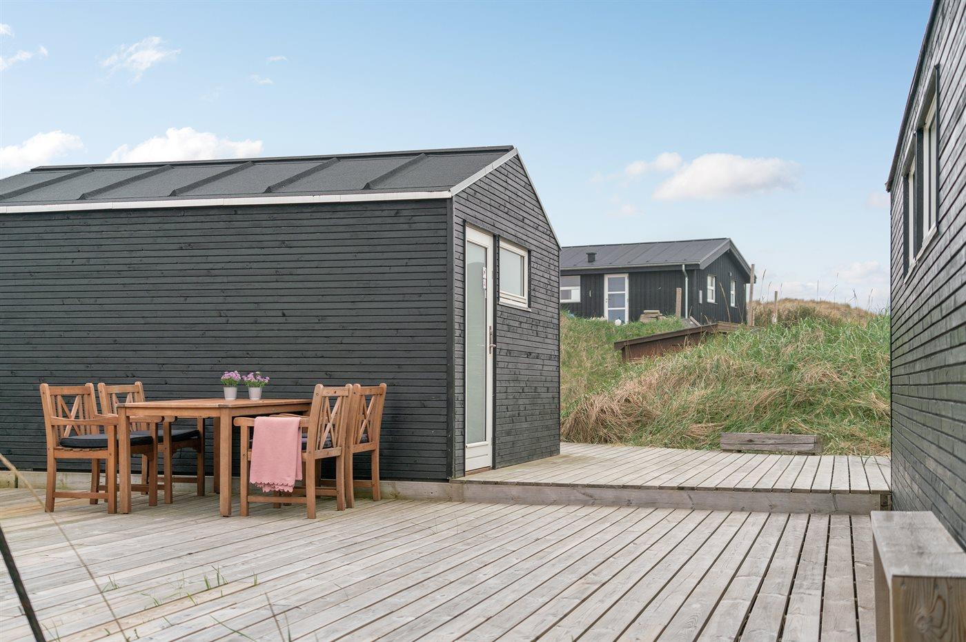 Hyggeligt sommerhus i 1. klitrække ved Vesterhavet med stor terrasse og kort gåafstand til Løkken centrum.