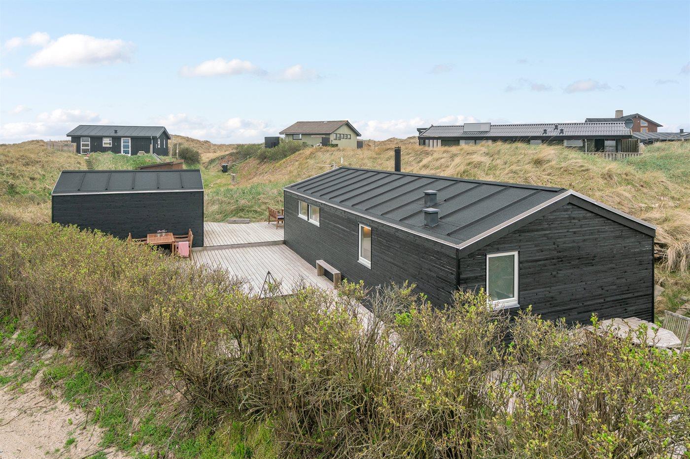 Dejligt sommerhus beliggende i 1. klitrække ud mod Vesterhavet med skøn stor terrasse rundt om huset. Huset ligger tæt på dejlig badetrand og flot natur og med gåafstand ind til Løkken by. De 2 af sovepladserne i dobbeltseng befinder sig i det tilhørende anneks.