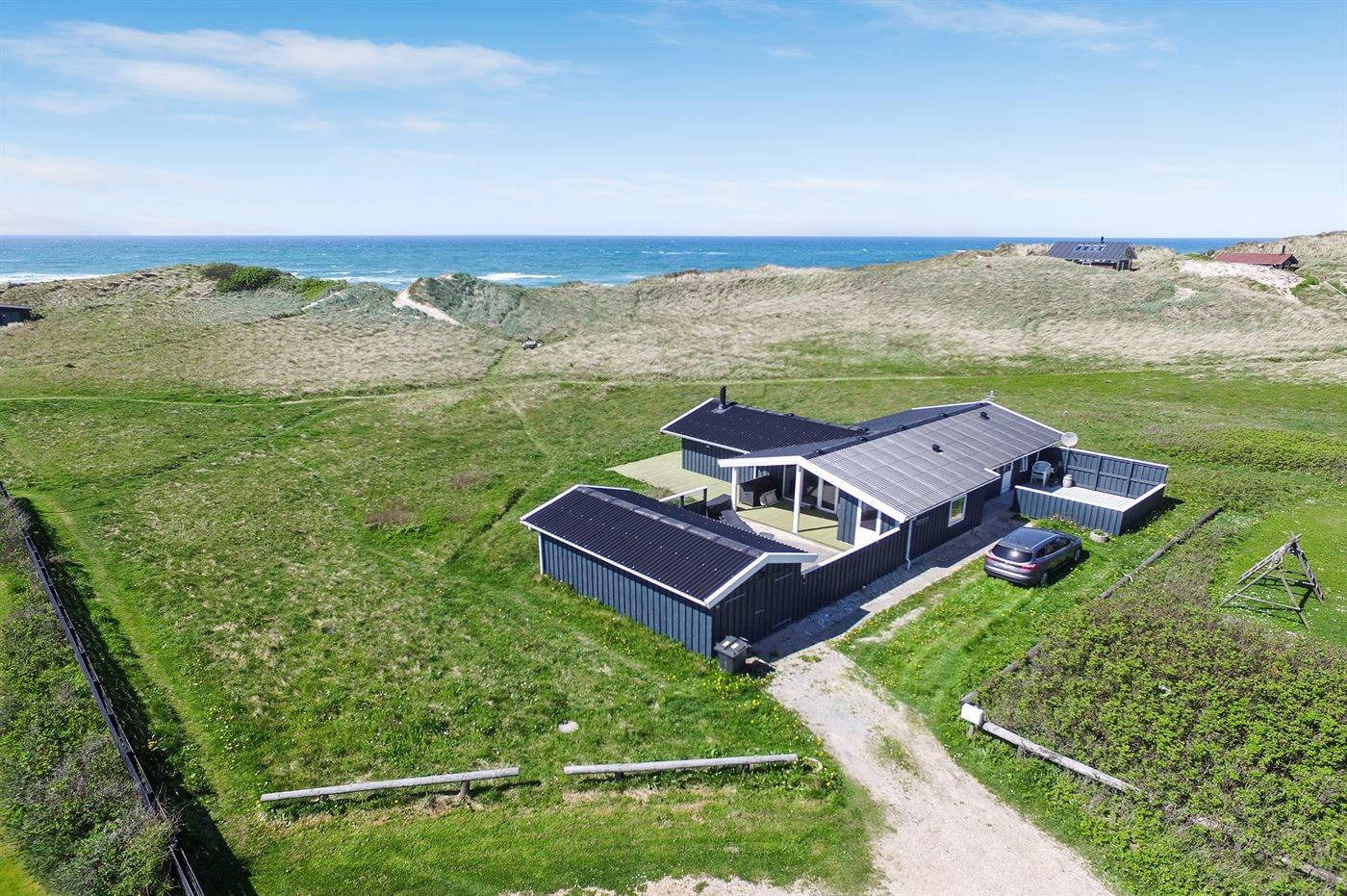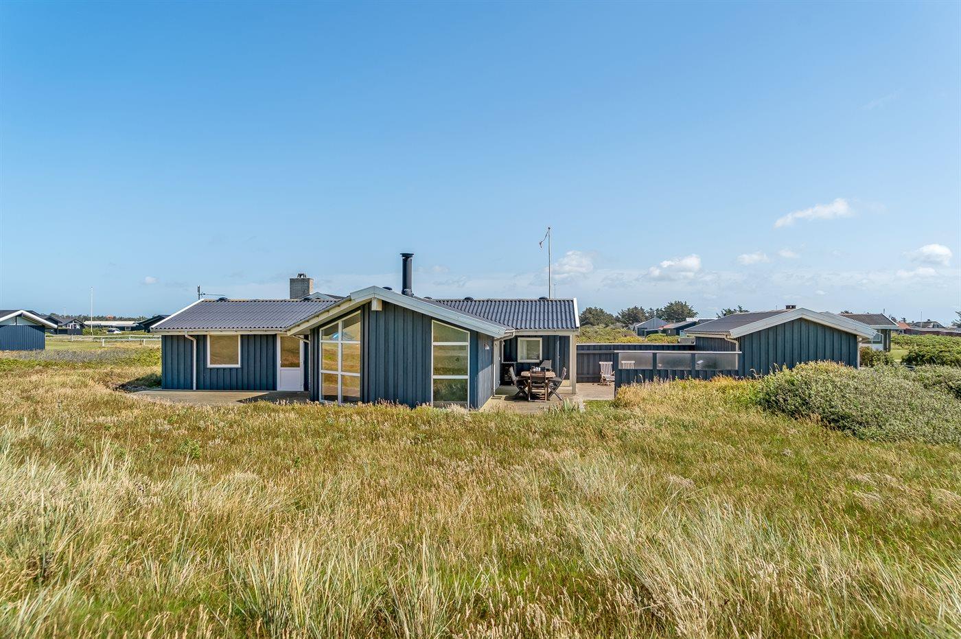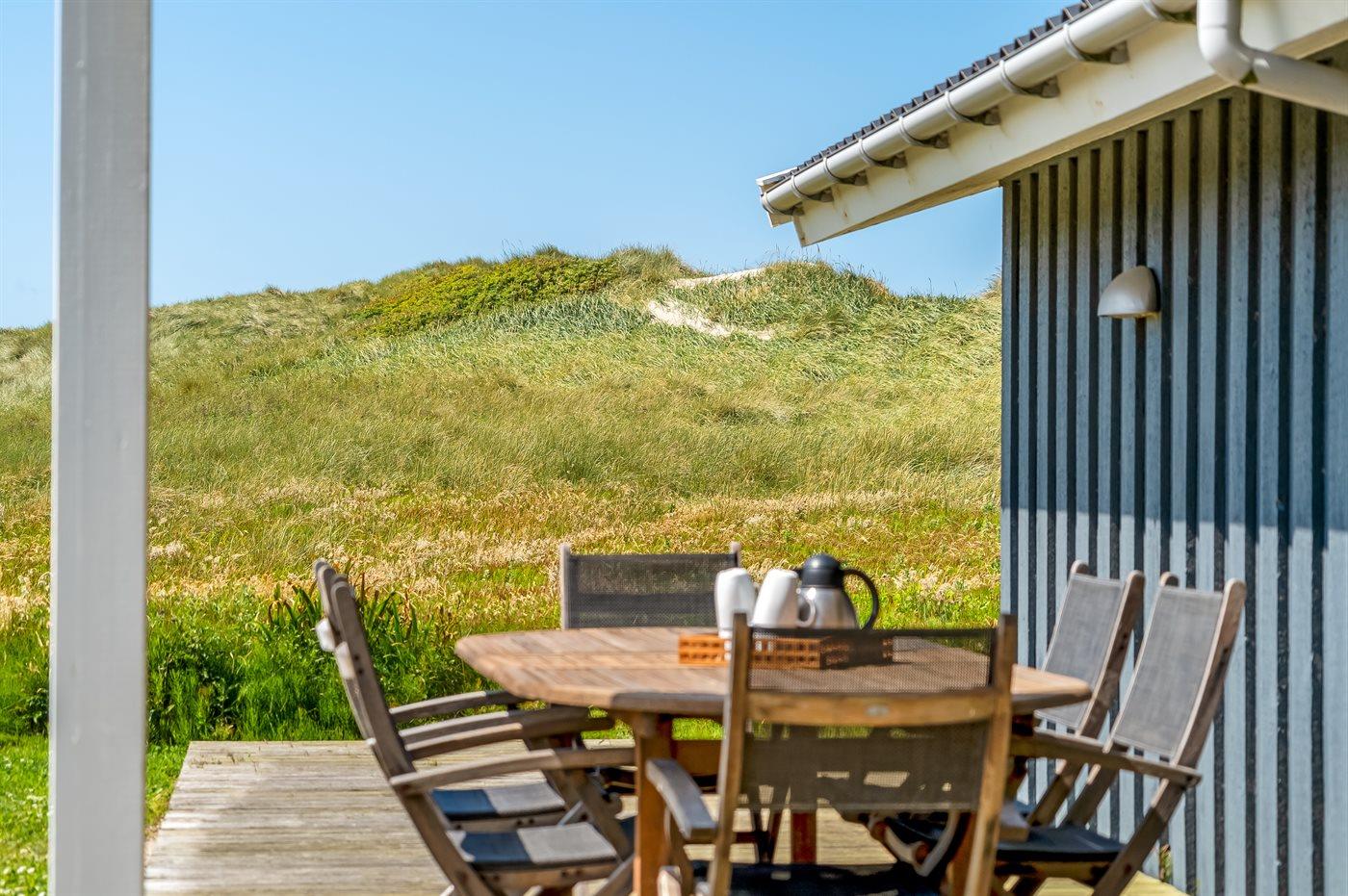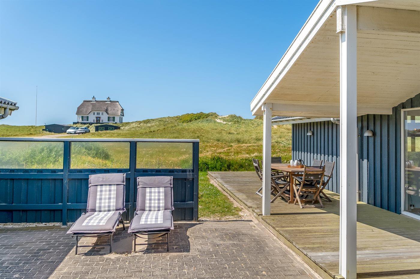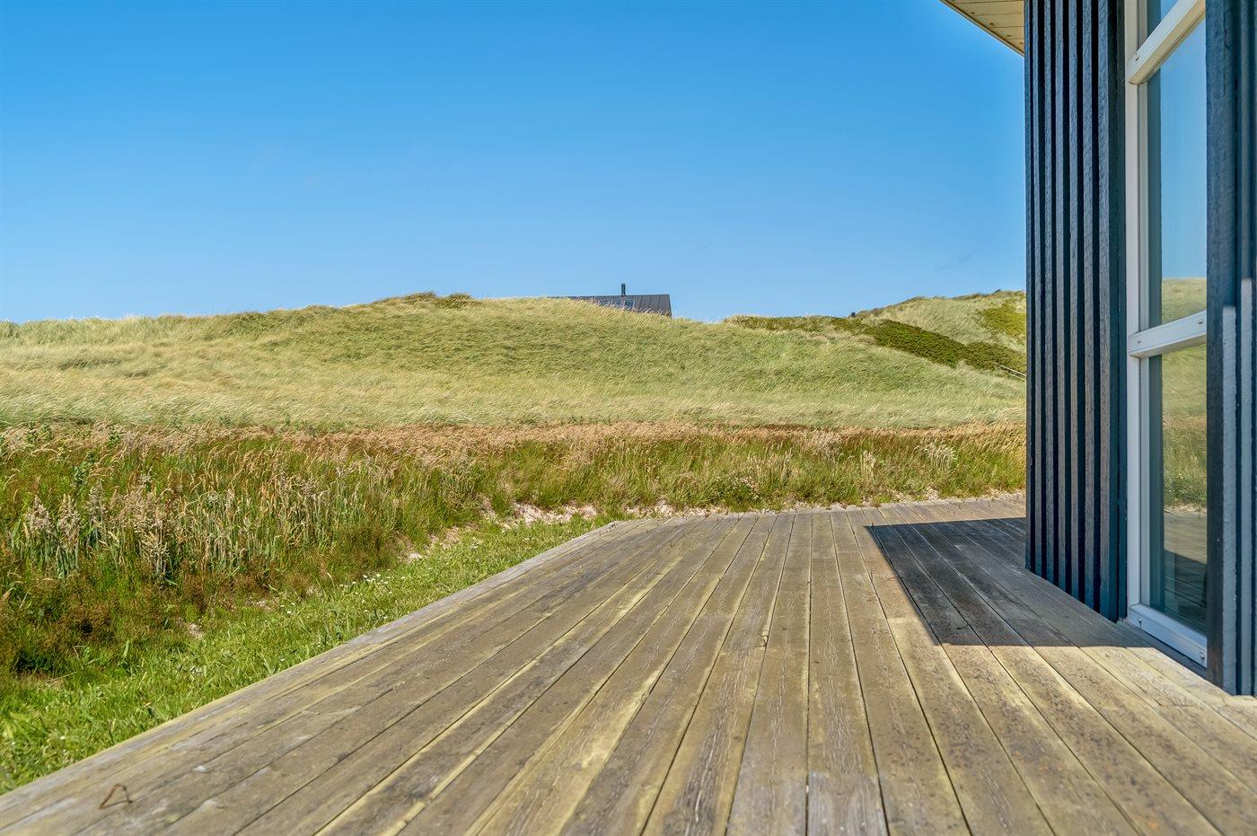 Her er både terrasser mod øst, hvor du kan nyde morgenkaffen og se solen kravle op og kæmpe sig vej om til vest, hvor du så kan se den sænke sig bag klitterne. Du kan også gå en tur op på klitterne og følge solen i seng, inden du selv skynder dig hjem i sofaen og varmer dig ved brændeovnen.