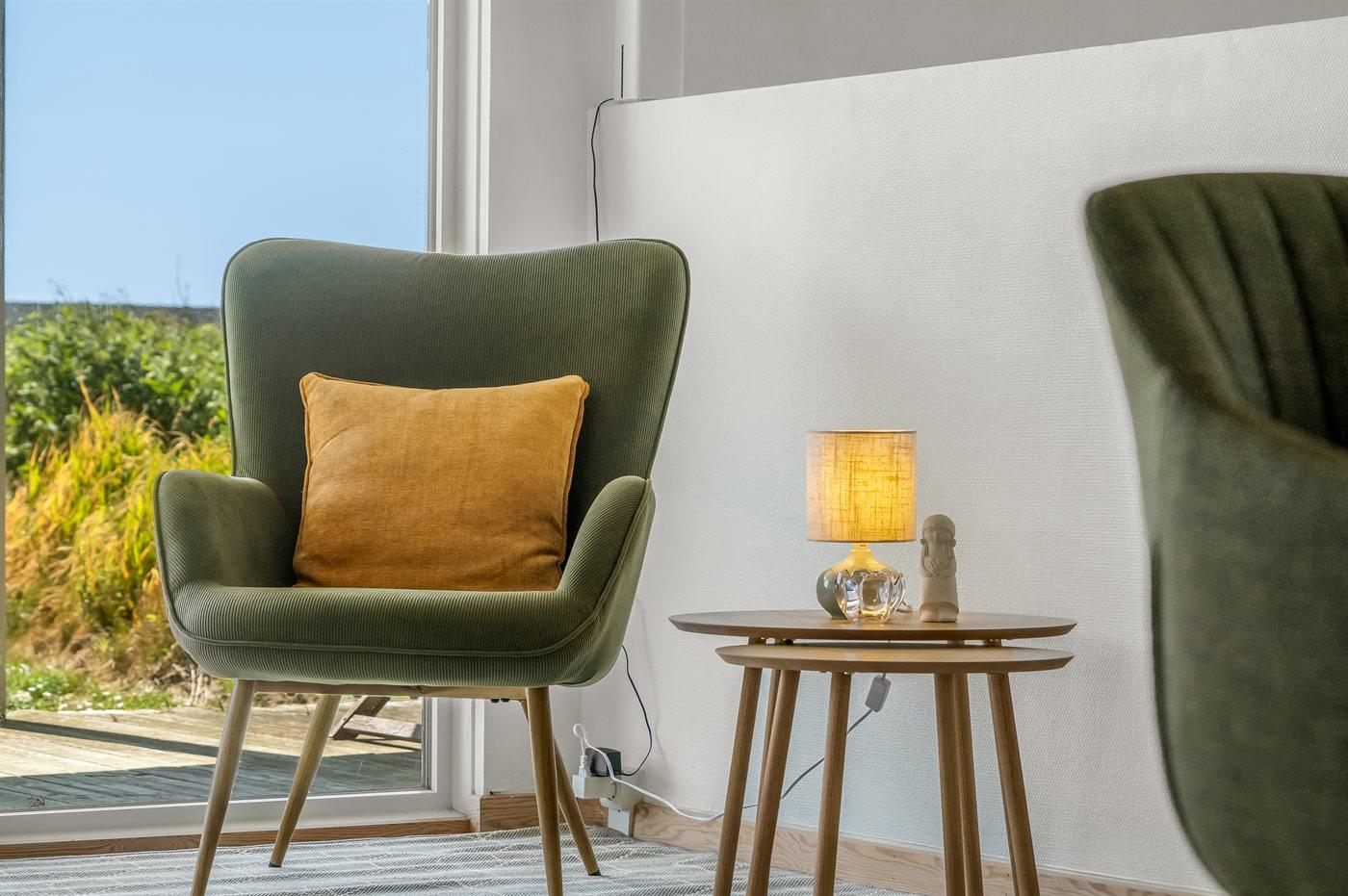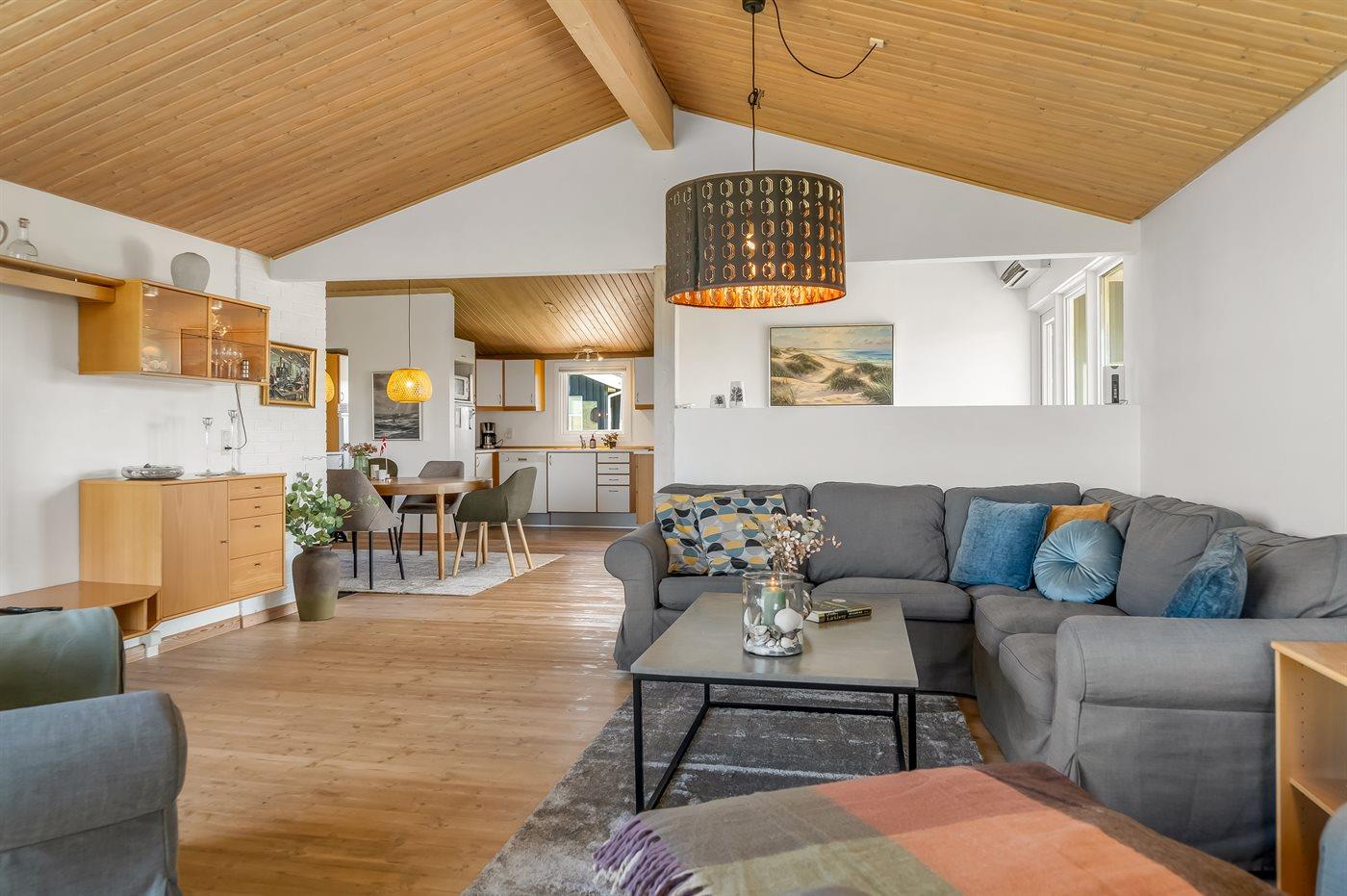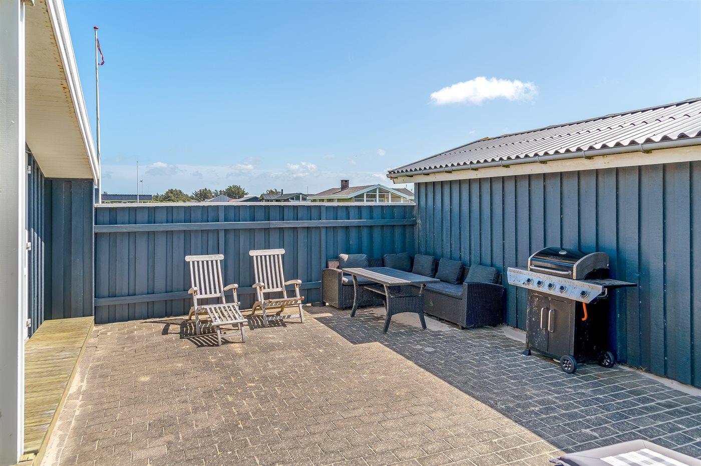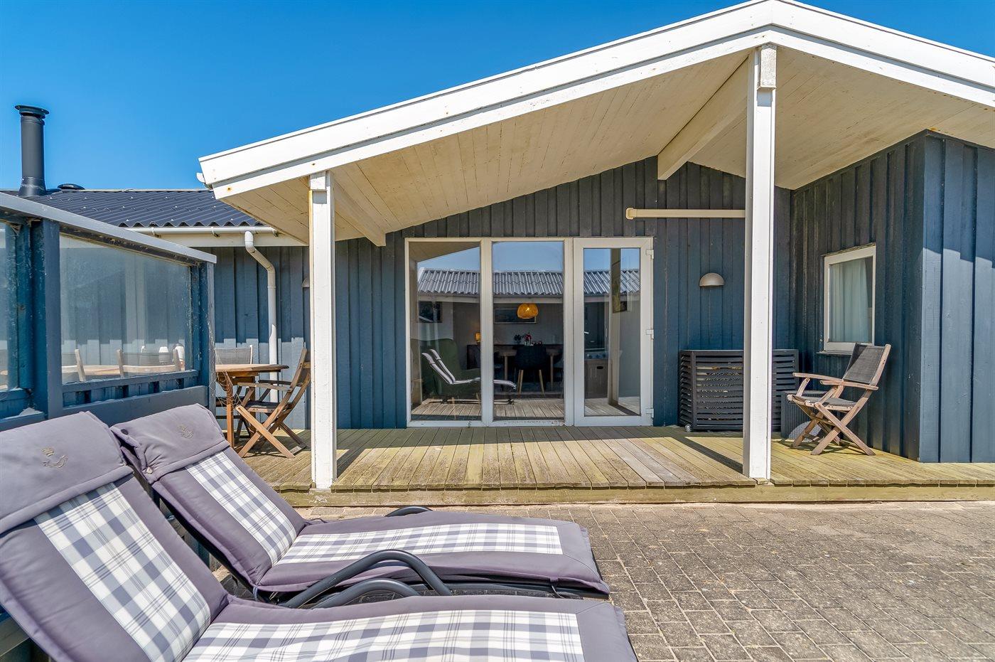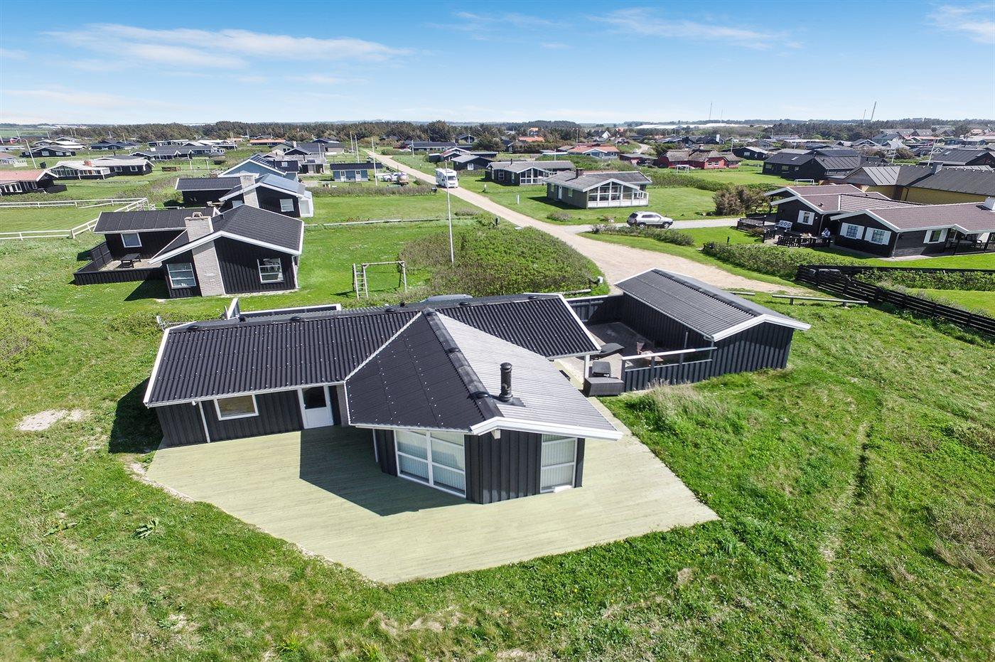 Her er både terrasser mod øst, hvor du kan nyde morgenkaffen og se solen kravle op og kæmpe sig vej om til vest, hvor du så kan se den sænke sig bag klitterne. Du kan også gå en tur op på klitterne og følge solen i seng, inden du selv skynder dig hjem i sofaen og varmer dig ved brændeovnen.