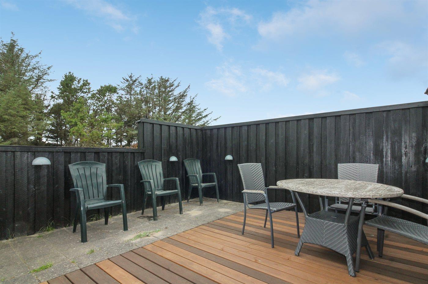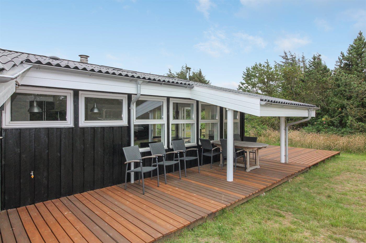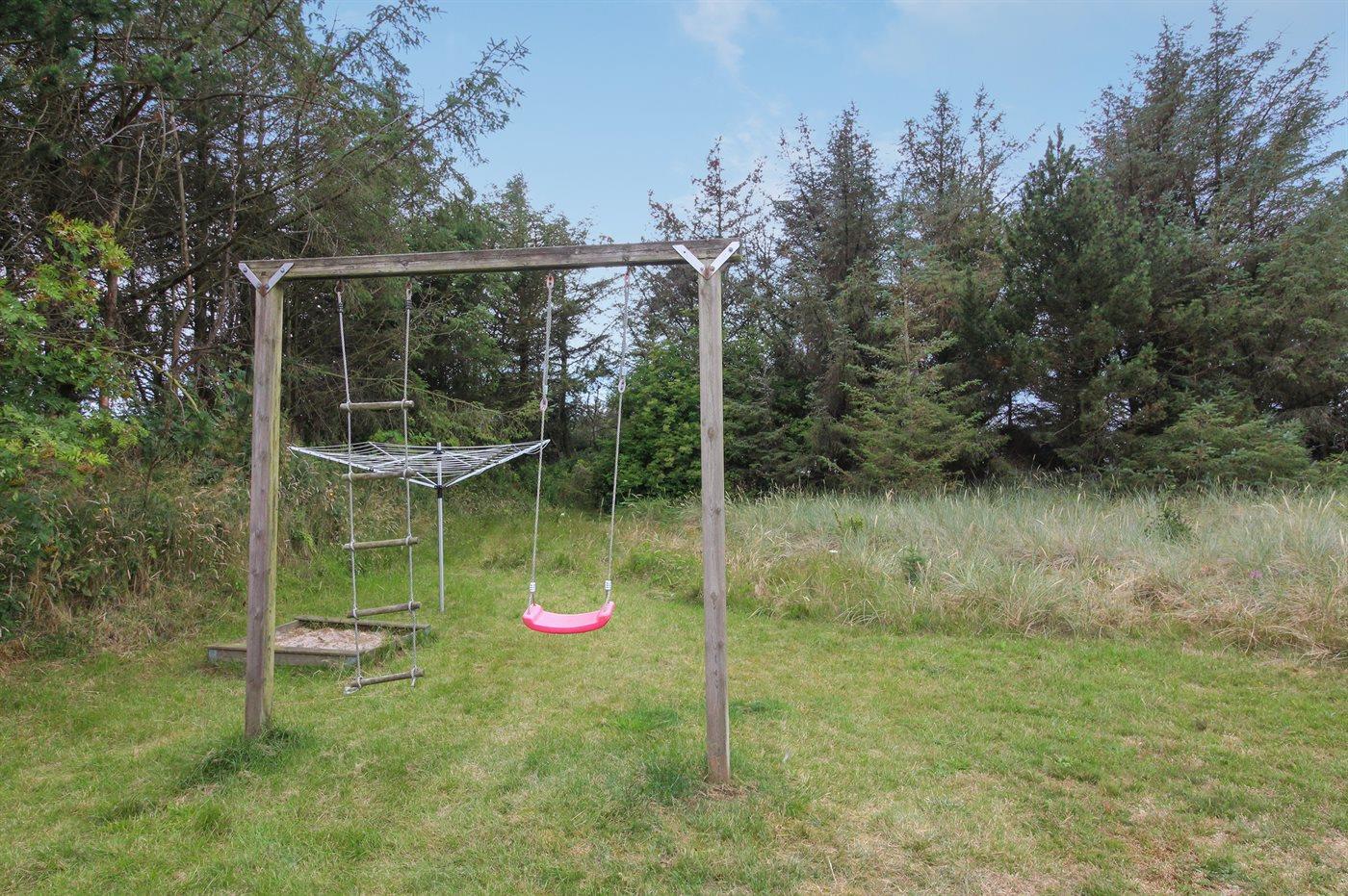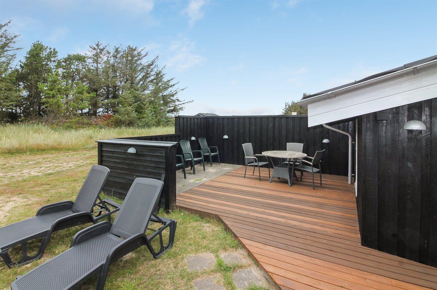 Ferieboligen er beliggende på en 2600 m² stor naturgrund. Der er 700 m til havet. Nærmeste forretning er beliggende i en afstand af 2000 m. Til ferieboligen hører 95 m² terrasseareal. Desuden er der 6 m² overdækket terrasse. Der er redskabsrum. Gynge. Sandkasse. Grill til rådighed. Parkering ved ferieboligen.