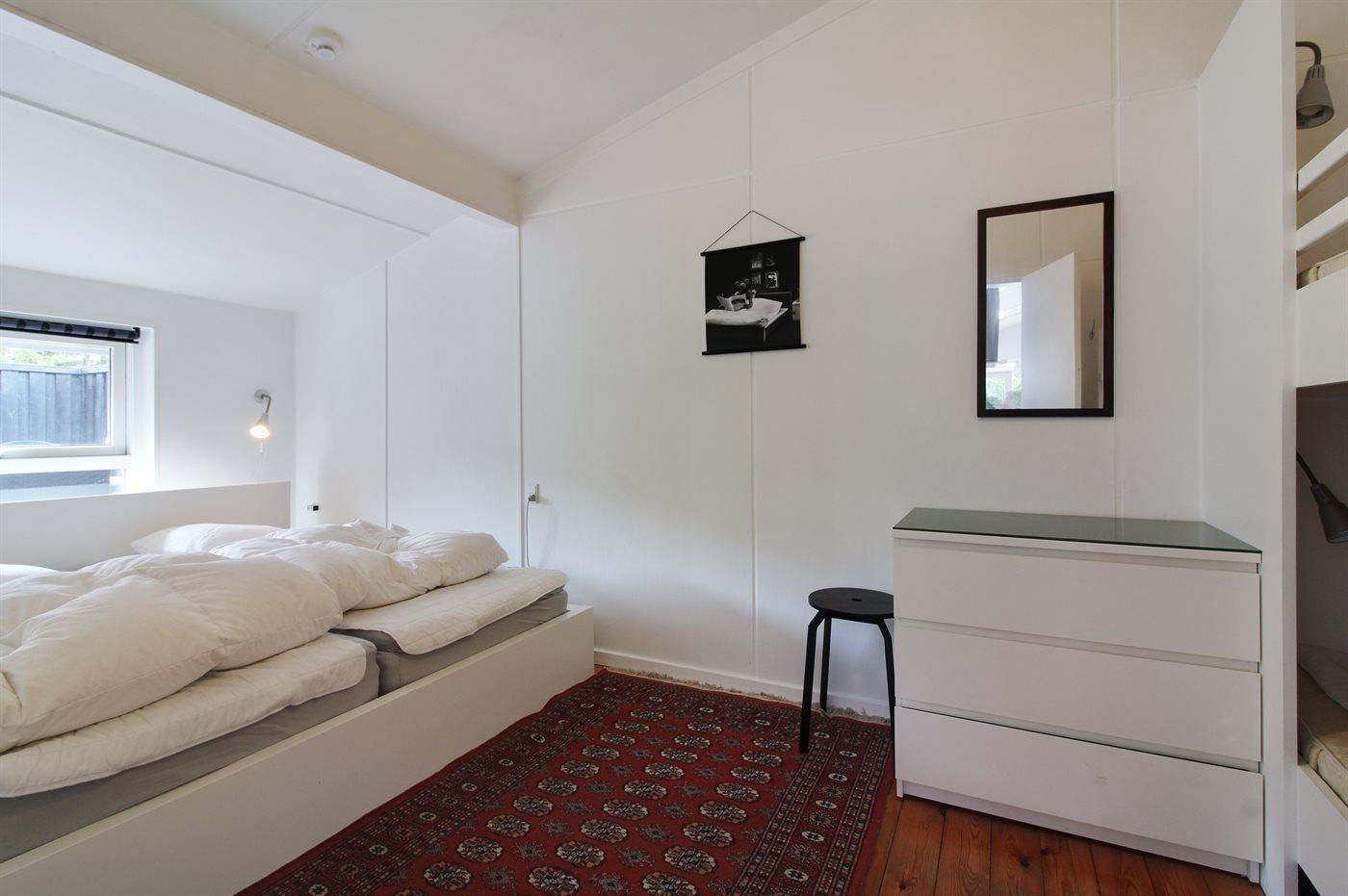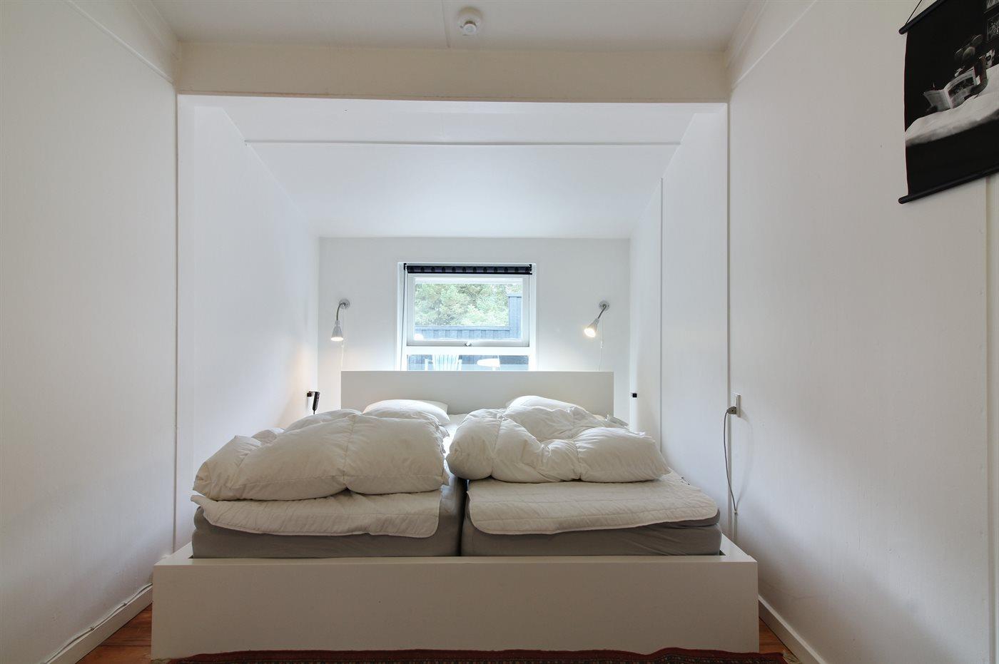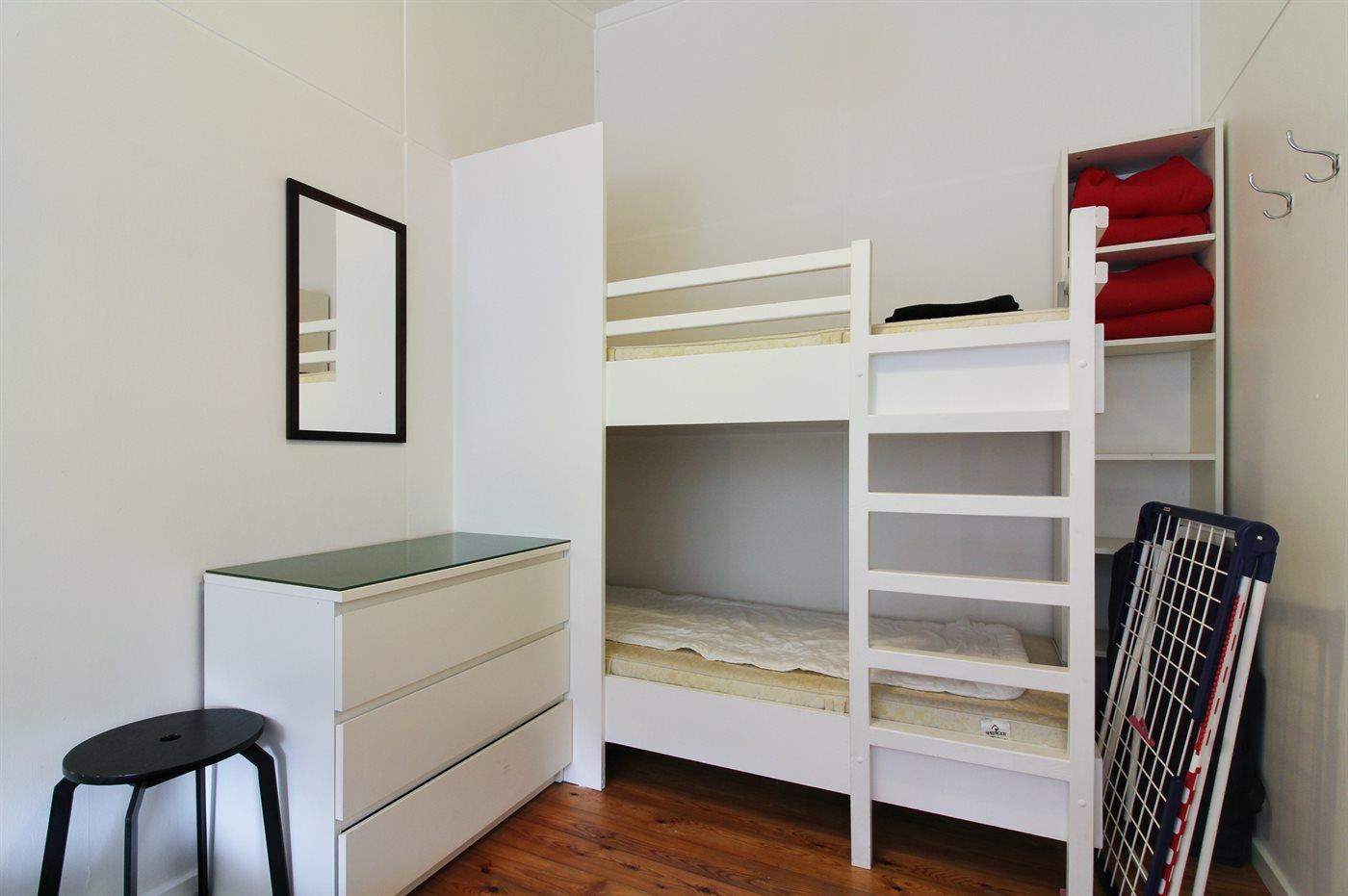 Der er i alt 2 soveværelser. Sovepladserne fordeler sig på: 2 sovepladser i dobbeltseng. 2 sovepladser i køjeseng.2 sovepladser i elevationssenge. Derudover er der 1 stk. barneseng.