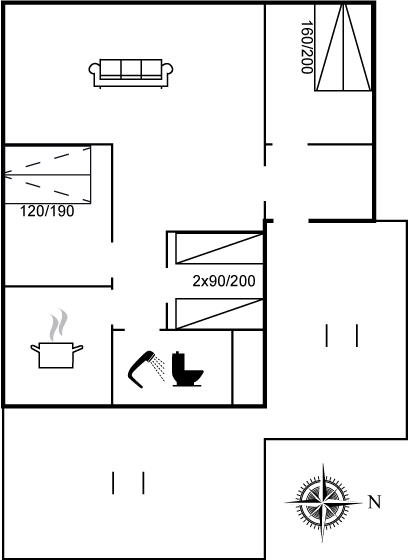Der er i alt 3 soveværelser. Sovepladserne fordeler sig på: 2 sovepladser i dobbeltseng. 2 sovepladser i enkeltsenge. 2 sovepladser i sovesofa (dobbelt).
