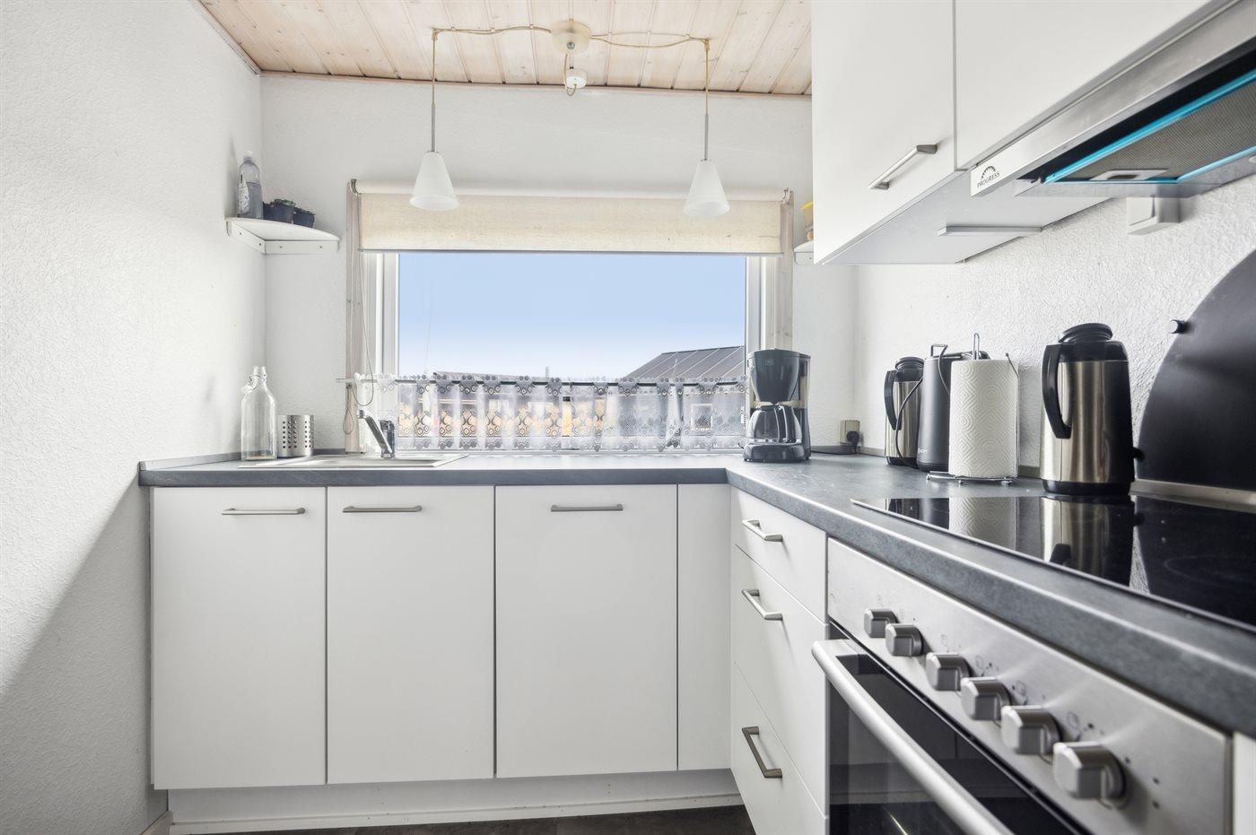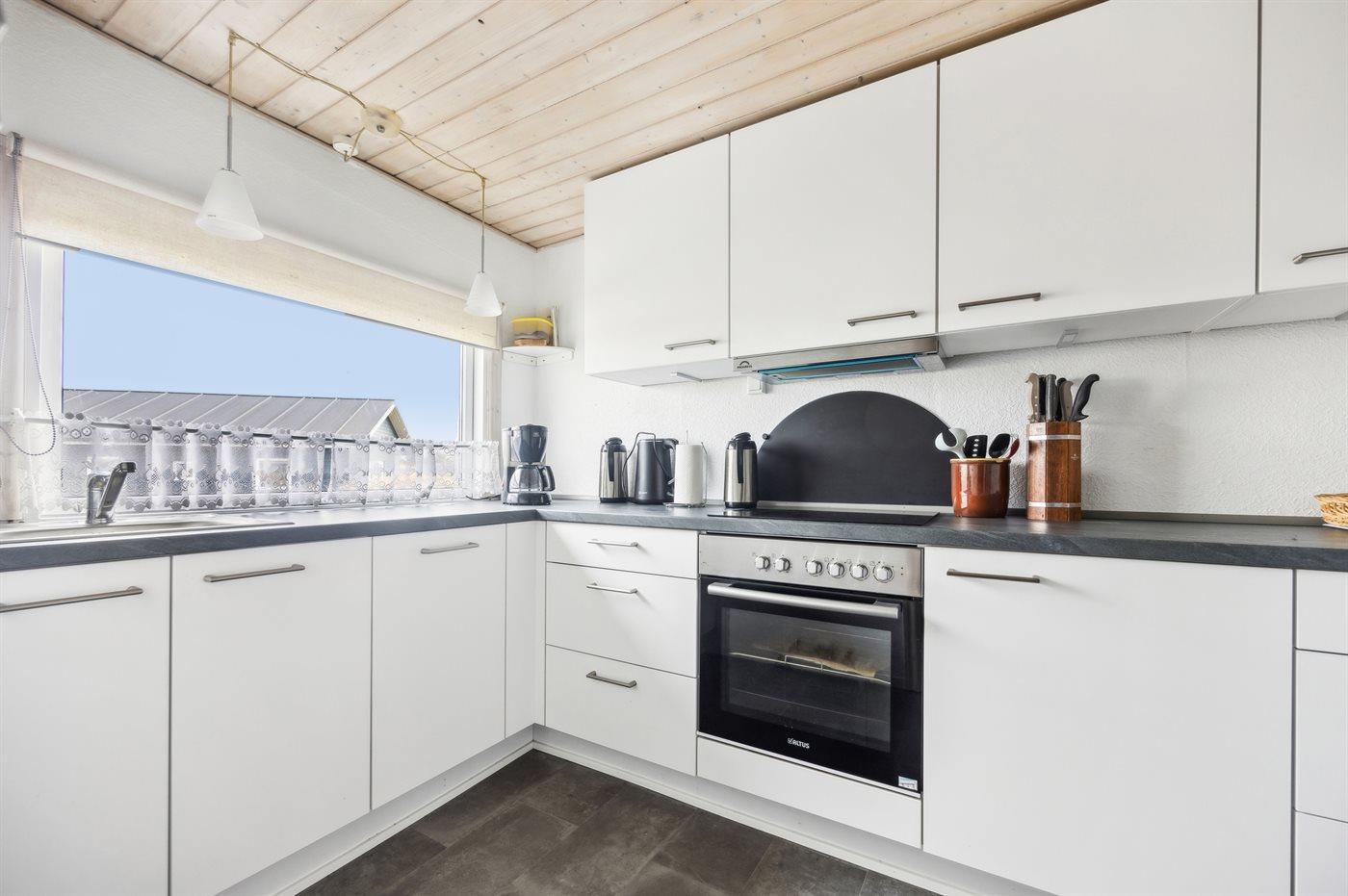Køkkenet er udstyret med 1 køleskab. Der er 4 keramiske kogeplader, varmluftovn samt opvaskemaskine.