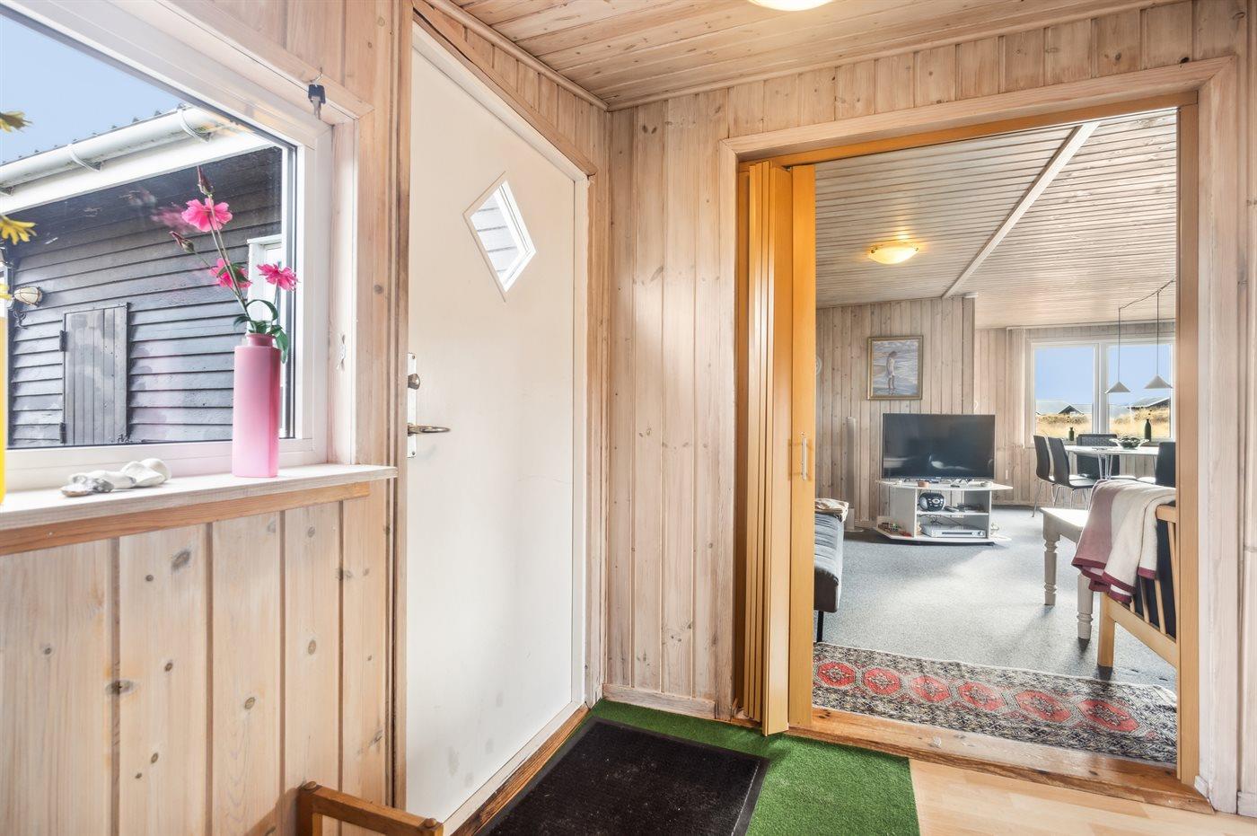 Ferieboligen er beliggende på en 300 m² stor naturgrund. Der er 250 m til havet. Nærmeste forretning er beliggende i en afstand af 1000 m. Heraf i alt 35 m² lukket terrasse. Parkering ved ferieboligen.