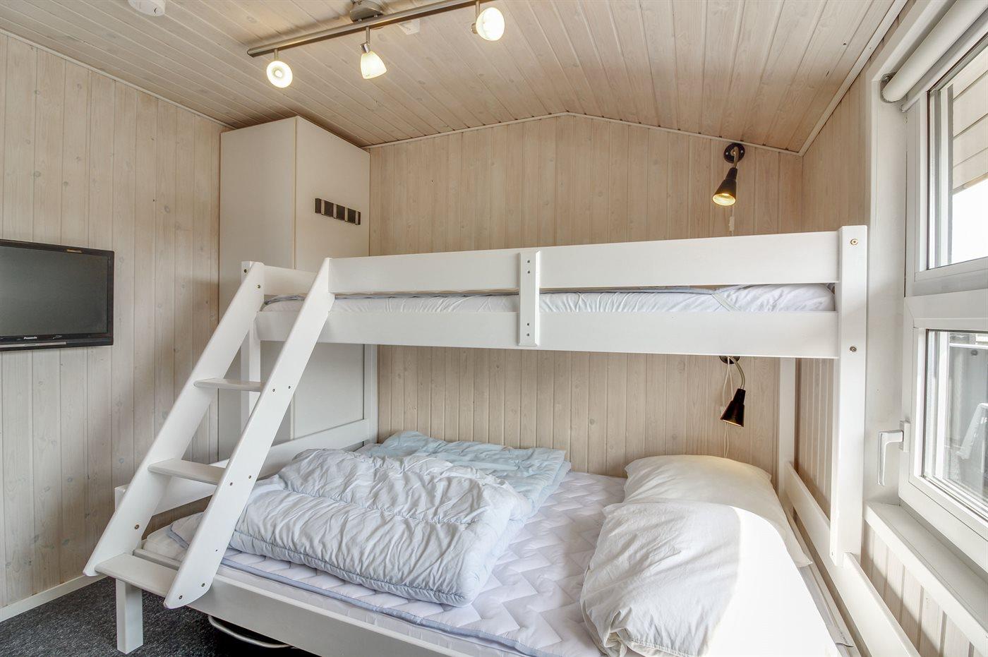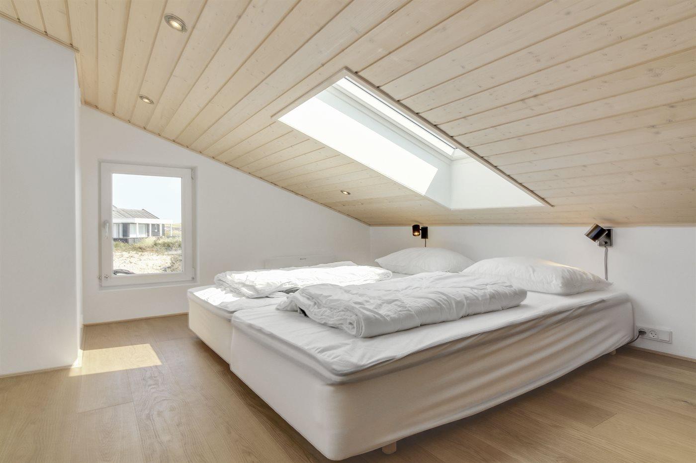 Der er i alt 3 soveværelser. Sovepladserne fordeler sig på: 4 sovepladser i dobbeltsenge. 3 sovepladser i køjesenge. 2 sovepladser på madrasser. 2 af disse sovepladser befinder sig på husets hems.