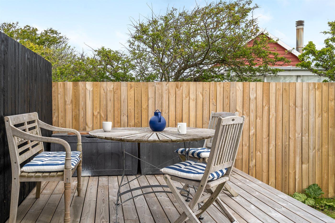 Ferieboligen er beliggende på en 447 m² stor naturgrund. Der er 250 m til havet. Nærmeste forretning er beliggende i en afstand af 400 m. Til ferieboligen hører 24 m² terrasseareal. Parkering ved ferieboligen.