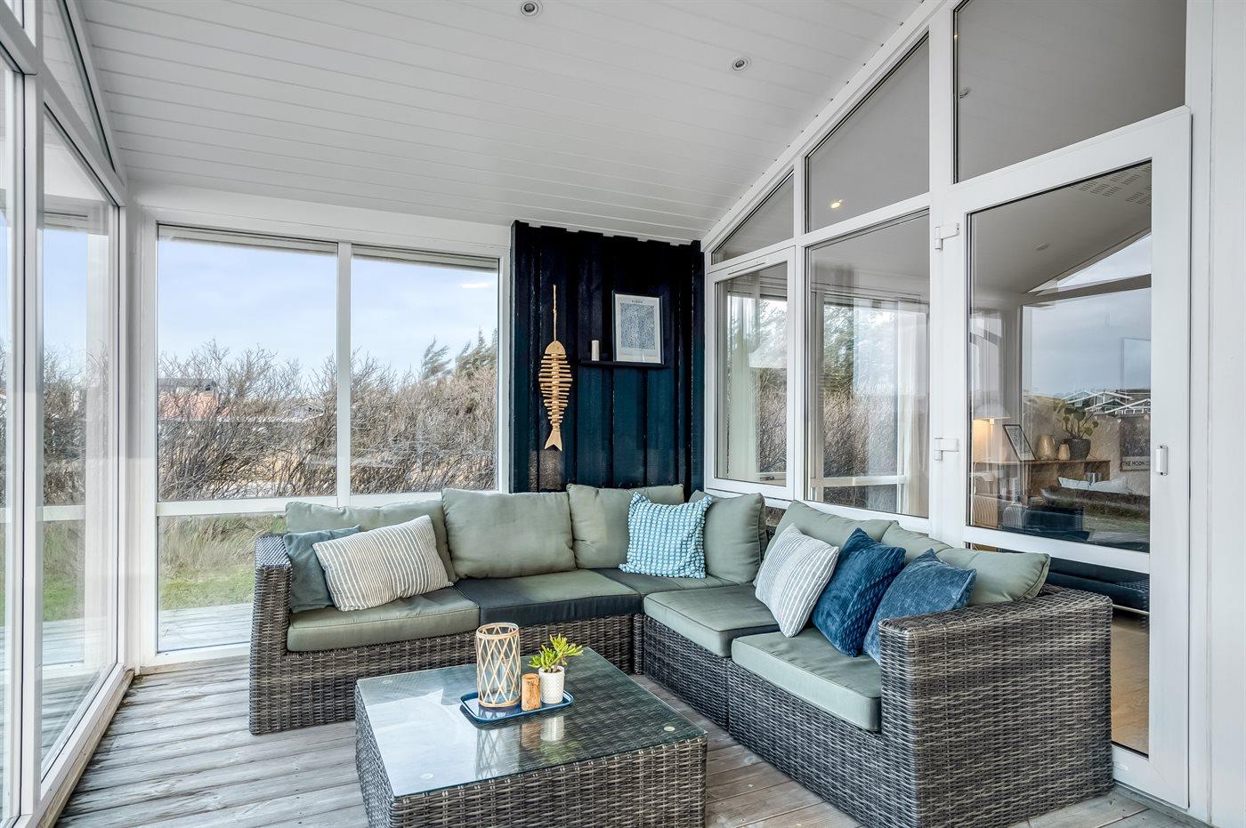 Flot sommerhus i Løkken med havudsigt, aktivitetsrum og sauna tæt på stranden.
