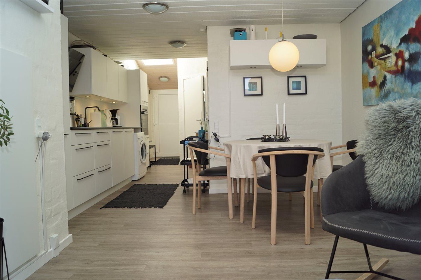 Køkkenet er udstyret med 1 køleskab. Der er 4 keramiske kogeplader, varmluftovn, mikrobølgeovn samt opvaskemaskine.