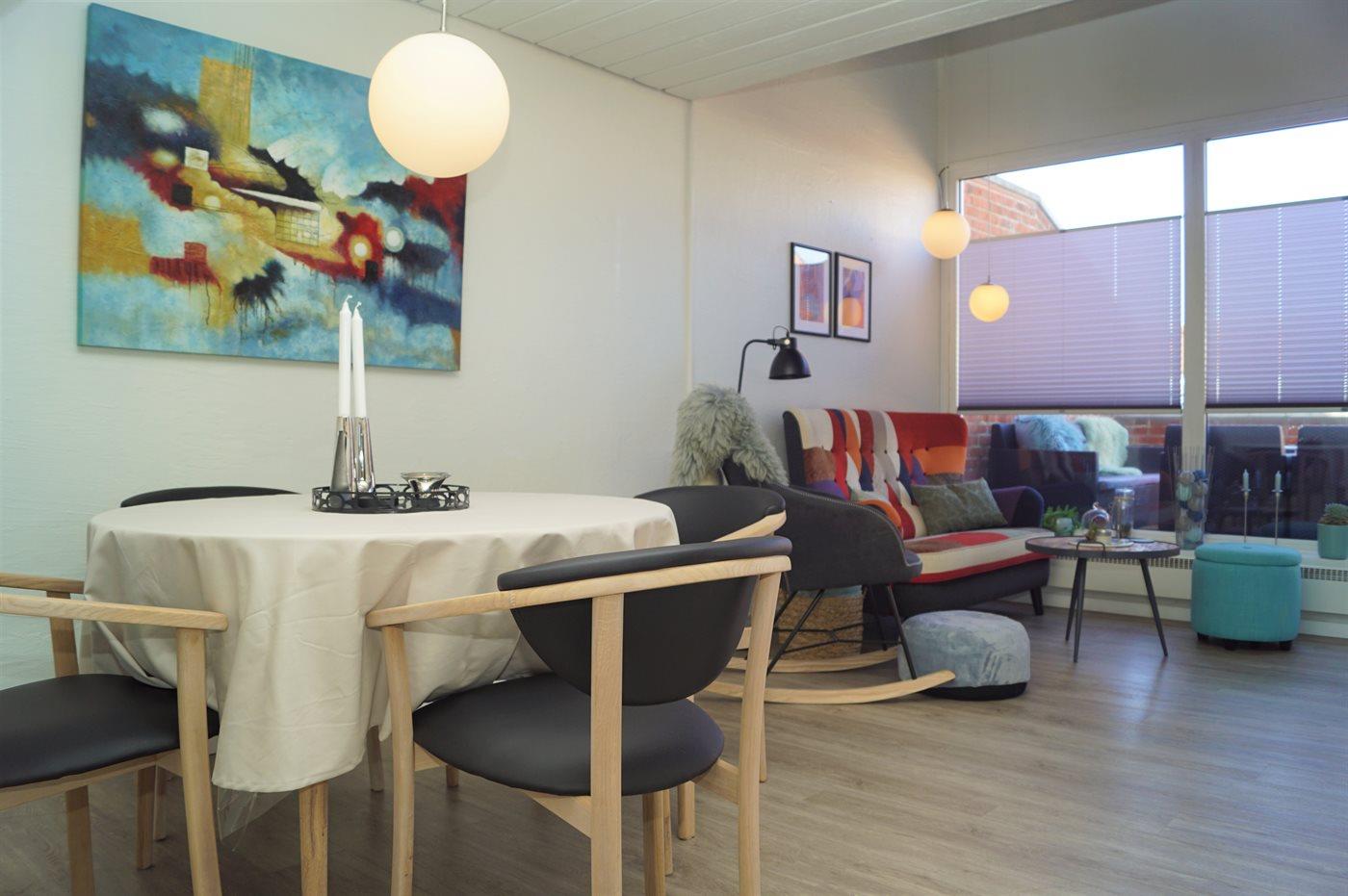 Flot ferielejlighed i to plan. Fra lejligheden, som beliggende i et feriekompleks lige uden for Løkken centrum, er der udgang til en terrasse.