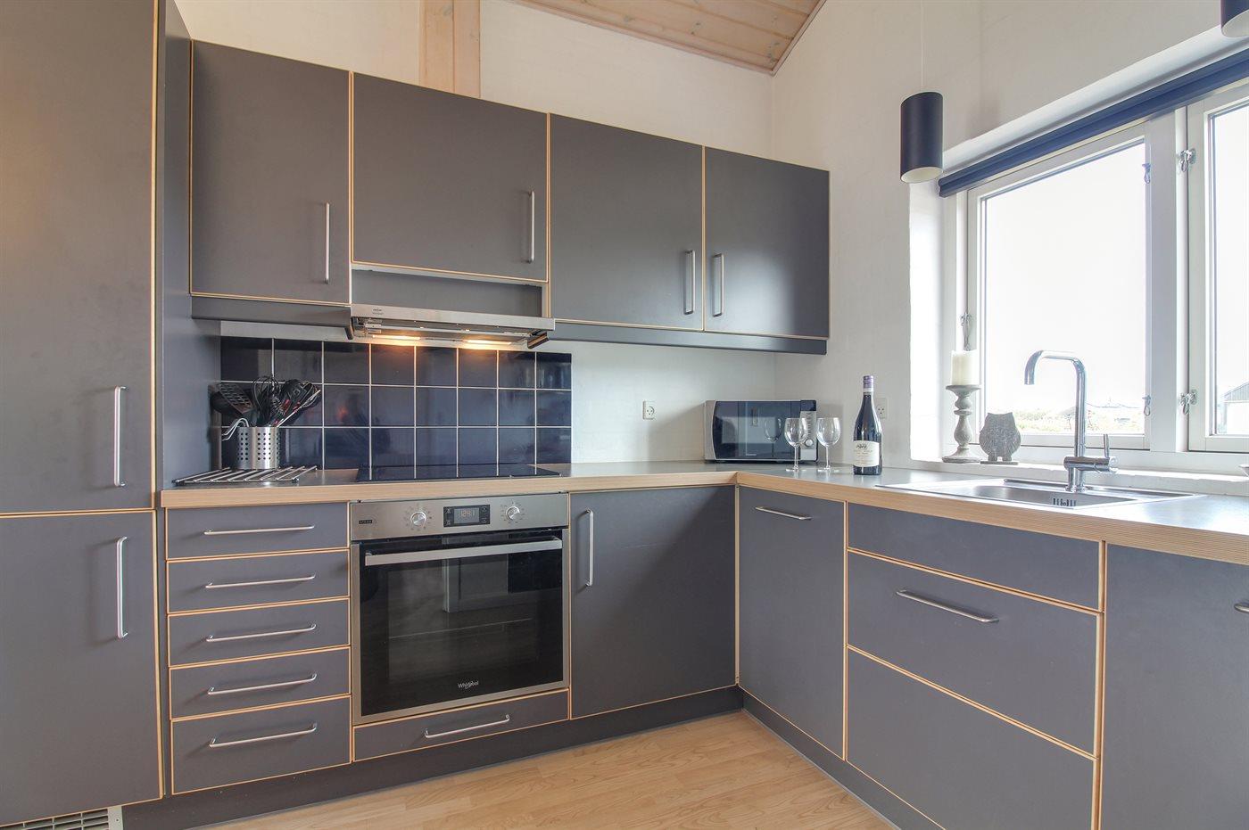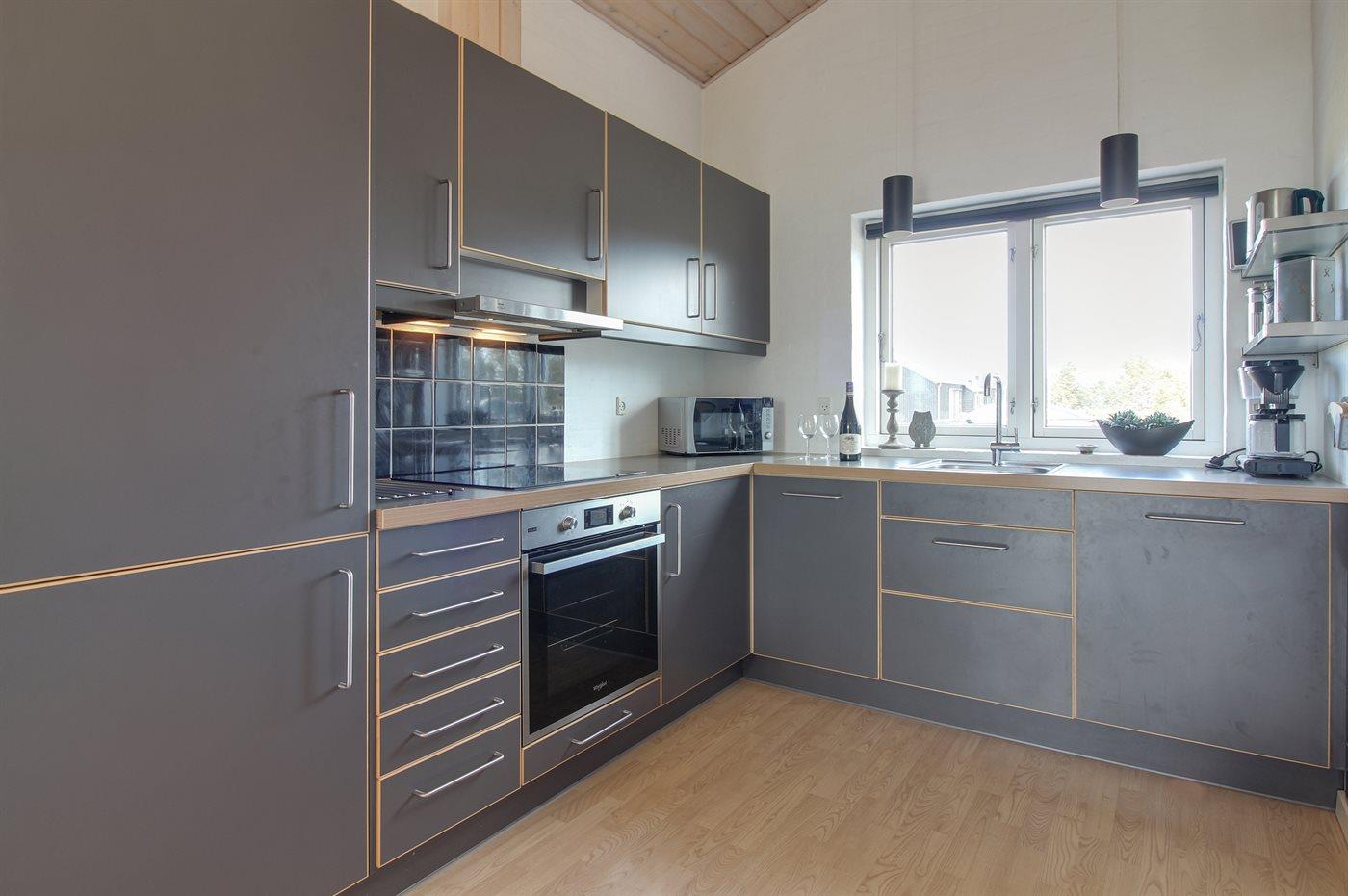 Køkkenet er udstyret med 1 køleskab. Der er 4 keramiske kogeplader, varmluftovn, mikrobølgeovn samt opvaskemaskine.