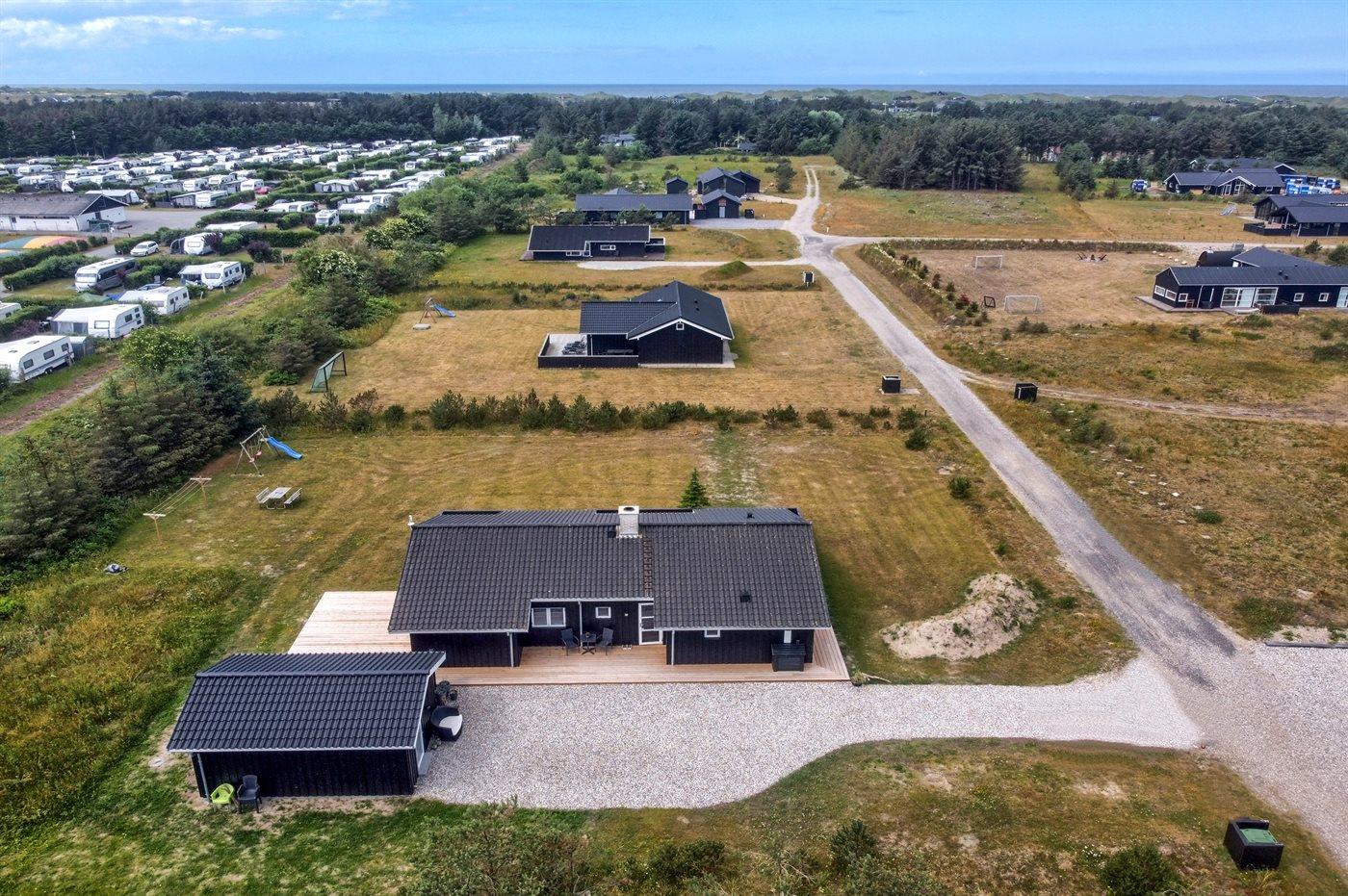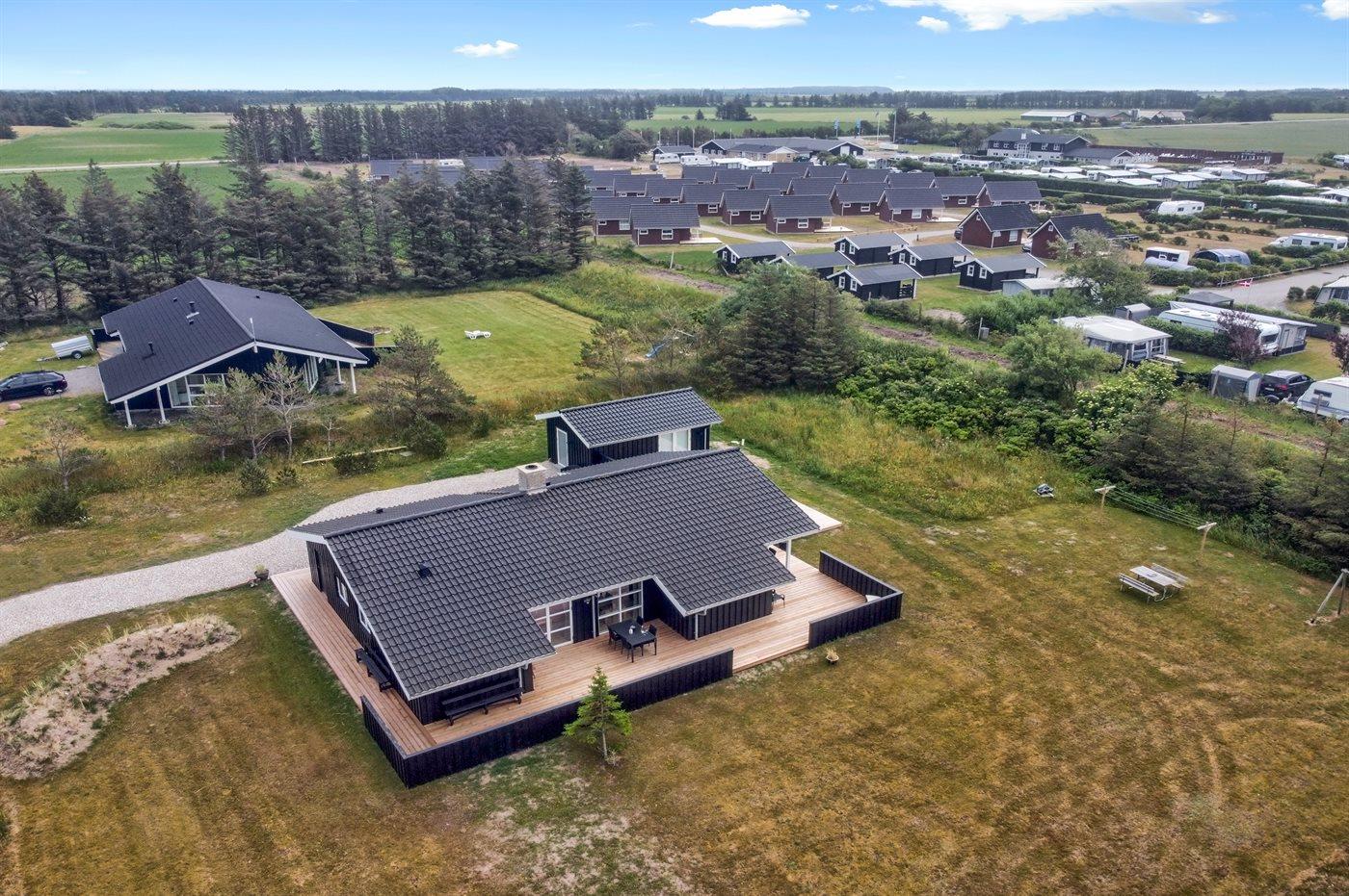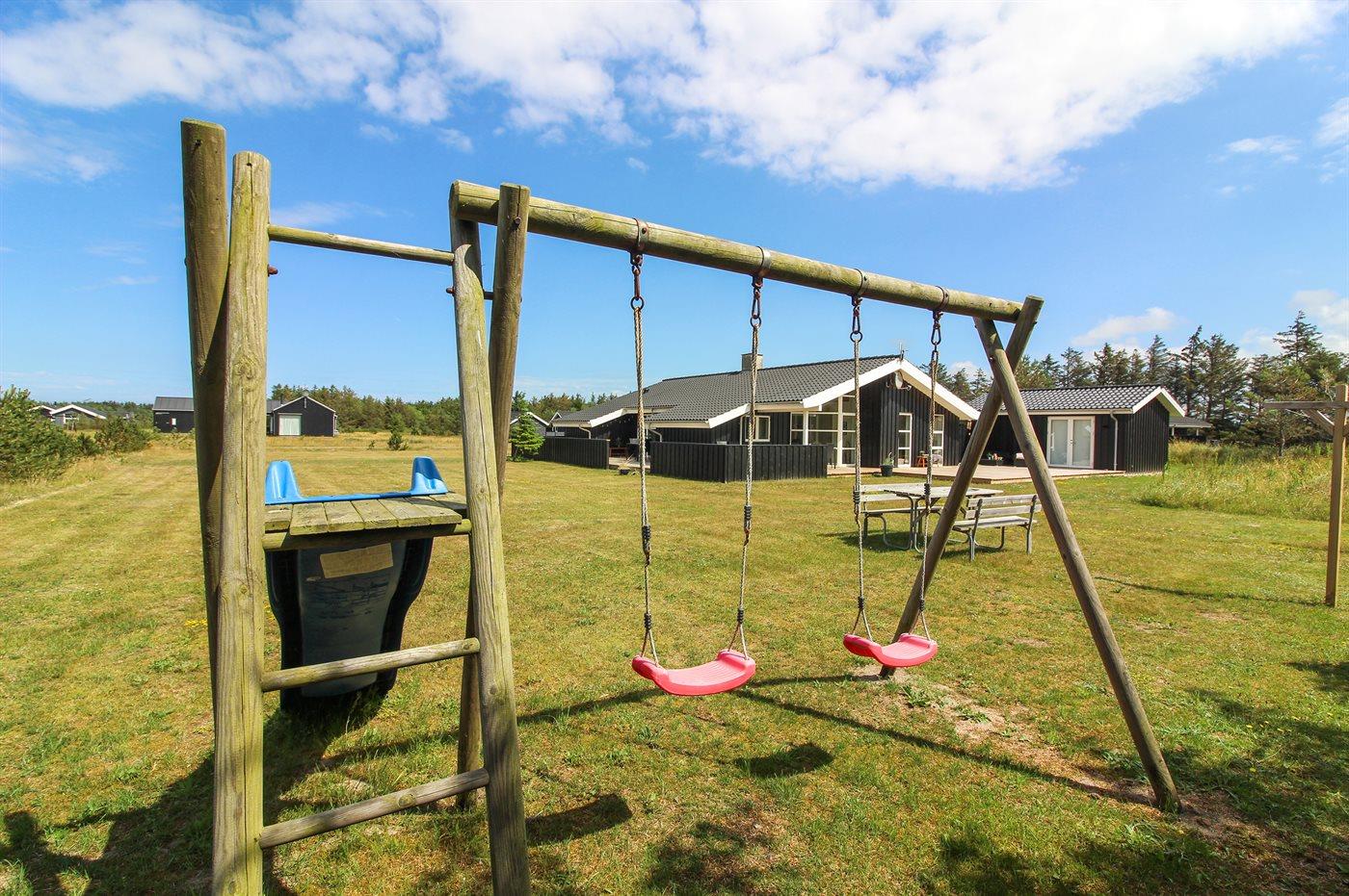 Ferieboligen er beliggende på en 2500 m² stor naturgrund. Der er 900 m til havet. Nærmeste forretning er beliggende i en afstand af 500 m. Der er en golfbane i en afstand af 2400 m. Til ferieboligen hører 150 m² terrasseareal. Desuden er der 10 m² overdækket terrasse. Der er redskabsrum. Gynge. Rutchebane. Der ligger en legeplads i en afstand af 200 m. Der er installeret stik til opladning af elbil. Type 2 stik. Parkering ved ferieboligen.
