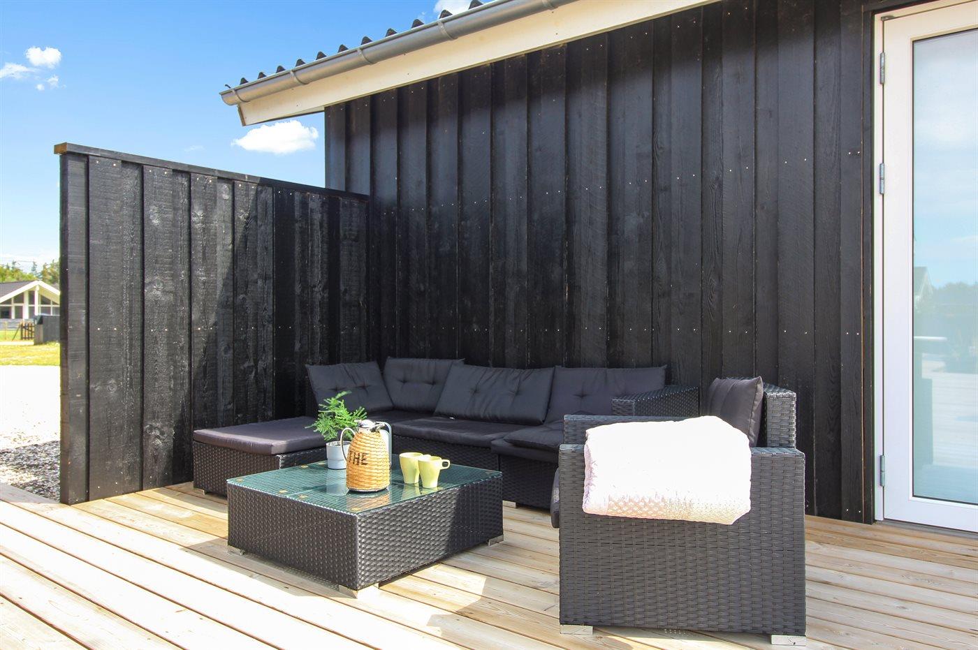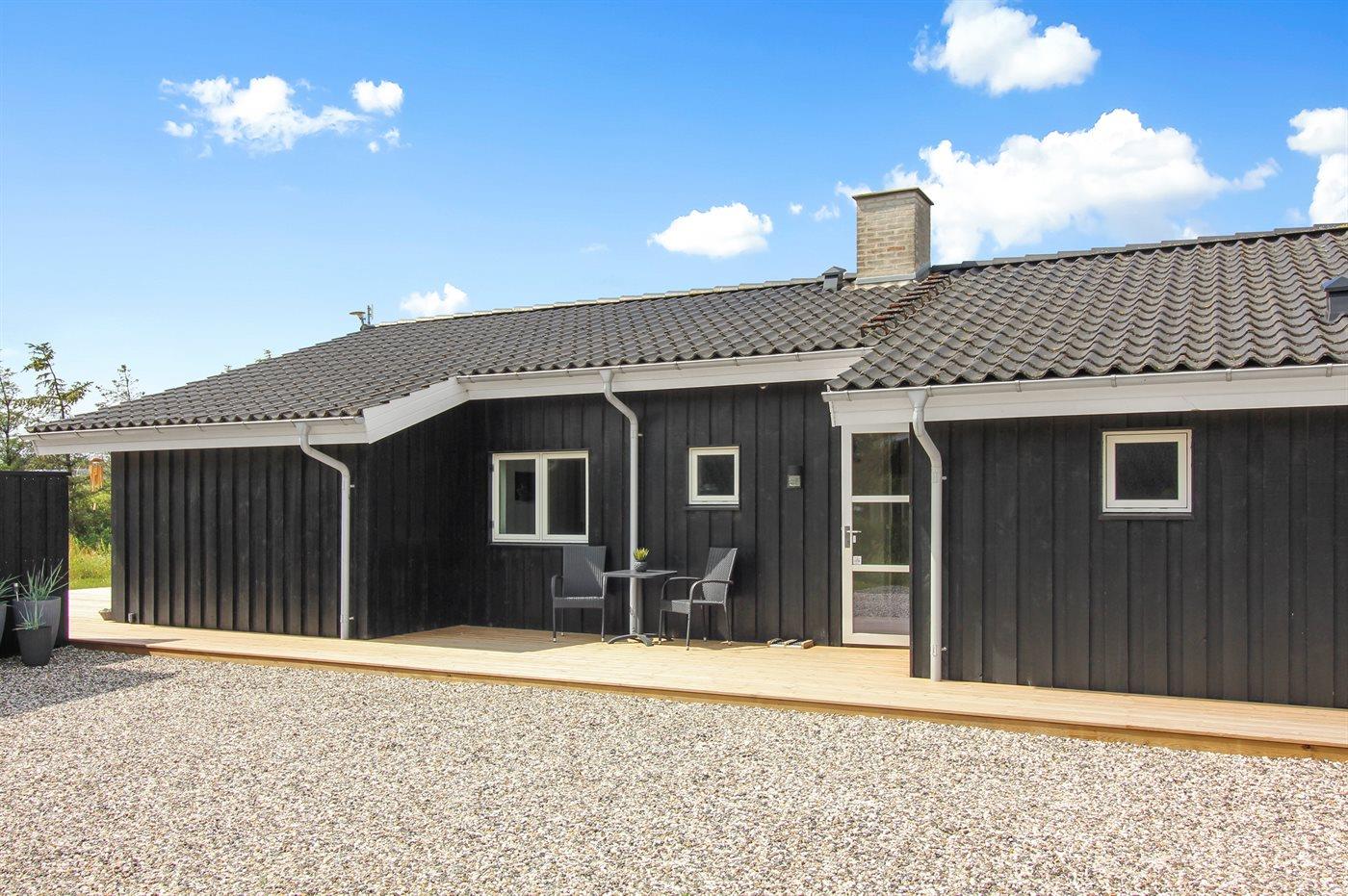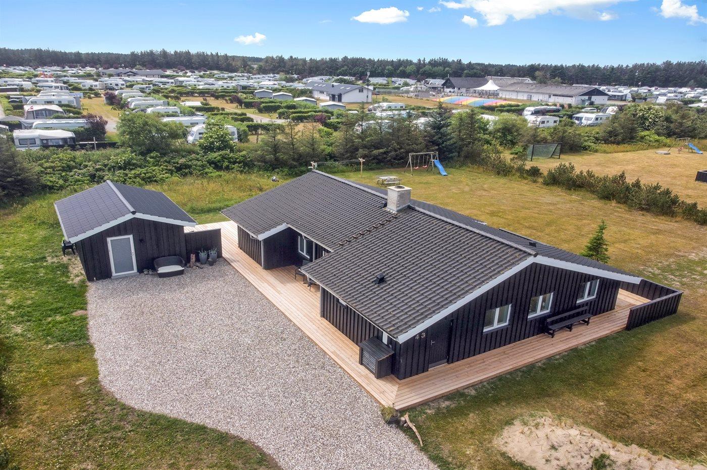 Ferieboligen er beliggende på en 2500 m² stor naturgrund. Der er 900 m til havet. Nærmeste forretning er beliggende i en afstand af 500 m. Der er en golfbane i en afstand af 2400 m. Til ferieboligen hører 150 m² terrasseareal. Desuden er der 10 m² overdækket terrasse. Der er redskabsrum. Gynge. Rutchebane. Der ligger en legeplads i en afstand af 200 m. Der er installeret stik til opladning af elbil. Type 2 stik. Parkering ved ferieboligen.