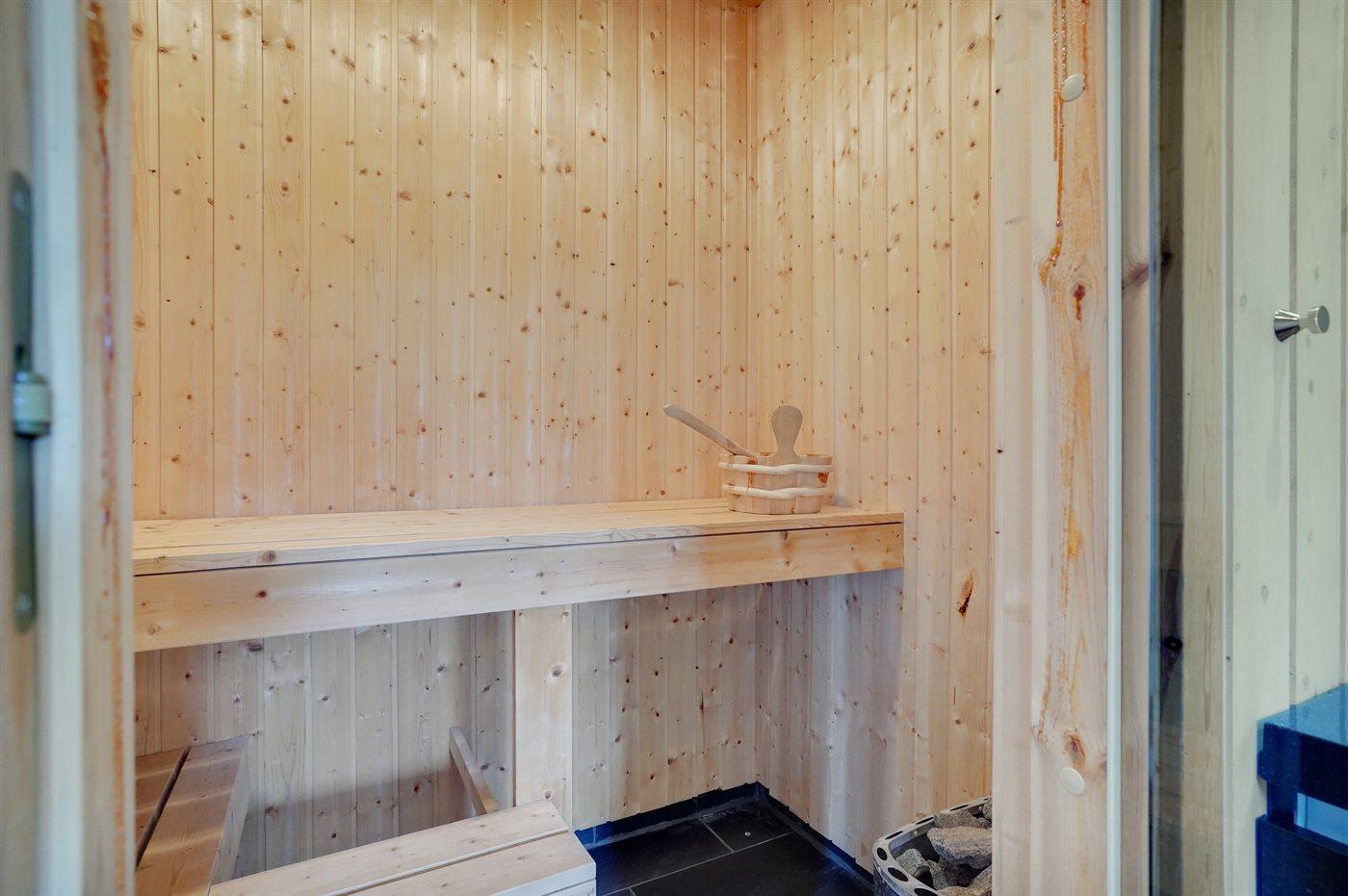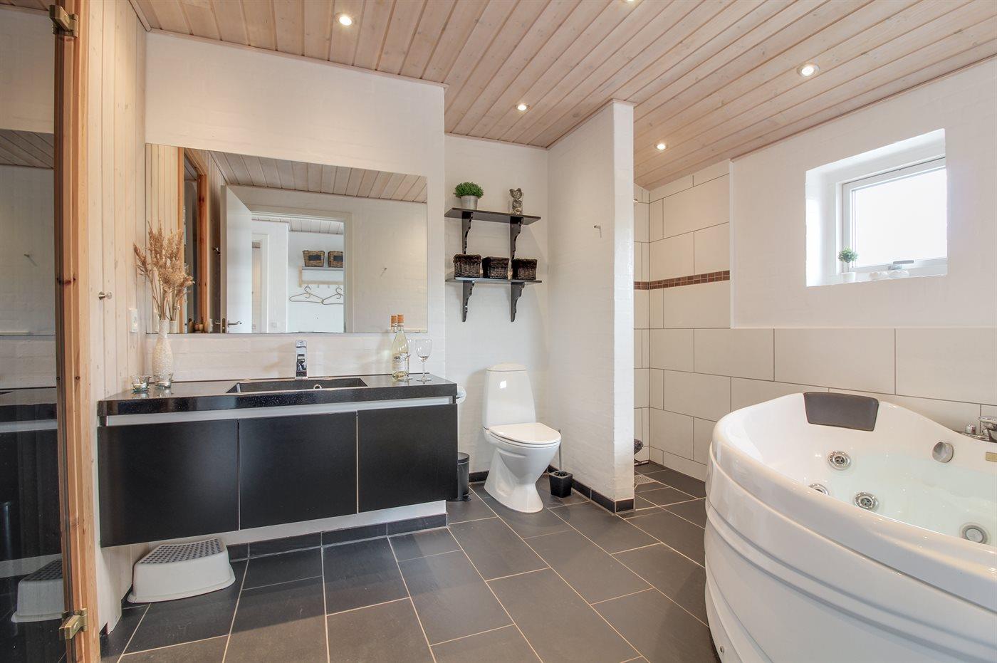 Der er 2 badeværelser med bruseniche og 2 toiletter. Der er gulvvarme på 2 badeværelser. I saunaen er der mulighed for afslapning.