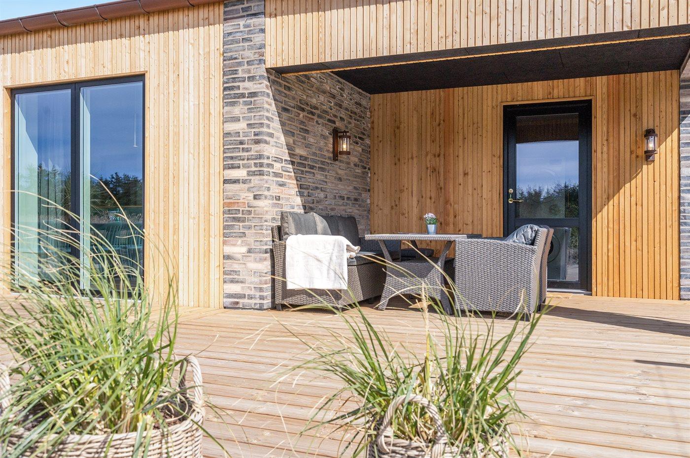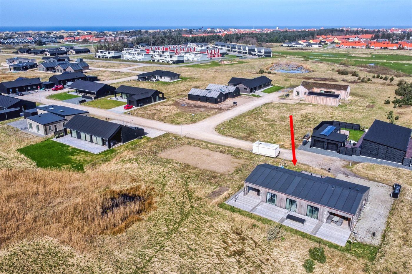Ferieboligen er beliggende på en 600 m² stor naturgrund. Der er 950 m til havet. Nærmeste forretning er beliggende i en afstand af 800 m. Til ferieboligen hører åbent terrasseareal. Desuden er der 20 m² overdækket terrasse. Der er redskabsrum. Gynge. Rutchebane. Udendørs bruser. Grill til rådighed. Der er installeret stik til opladning af elbil. Parkering ved ferieboligen.