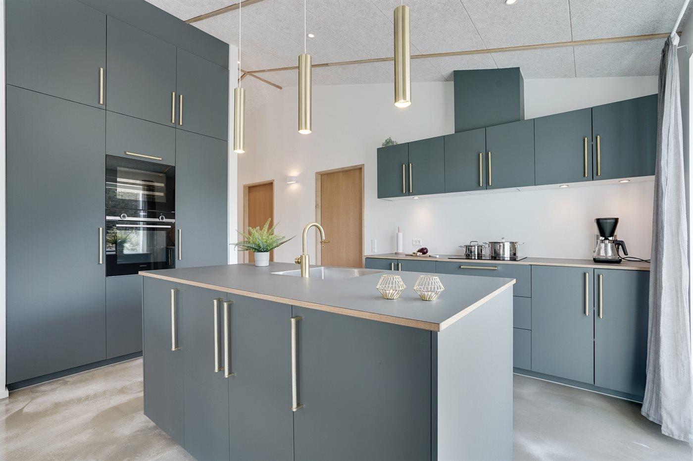Køkkenet er udstyret med 1 køleskab. Der er 4 induktionskogeplader, varmluftovn, mikrobølgeovn samt opvaskemaskine.