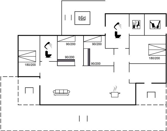 Der er i alt 4 soveværelser. Sovepladserne fordeler sig på: 4 sovepladser i dobbeltsenge. 2 sovepladser i enkeltsenge. 4 sovepladser i køjesenge. Derudover er der 1 stk. barneseng.