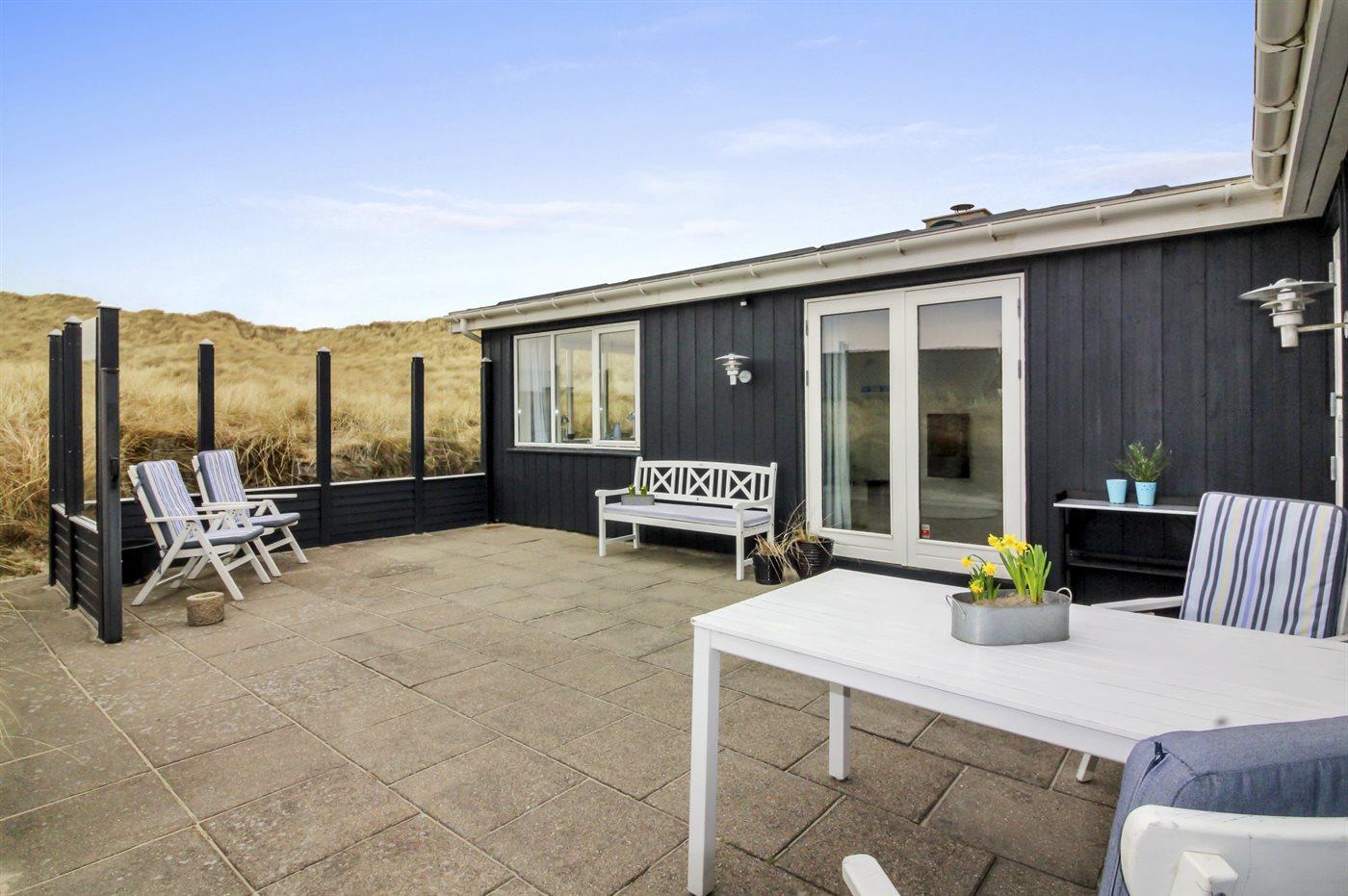 Dejligt sommerhus beliggende i flot natur og ikke mindst tæt på den dejlige badestrand. Huset ligger i første klitrække til stranden, på en meget stor grund, i et attraktivt område med mulighed for både cykel- og gåture.