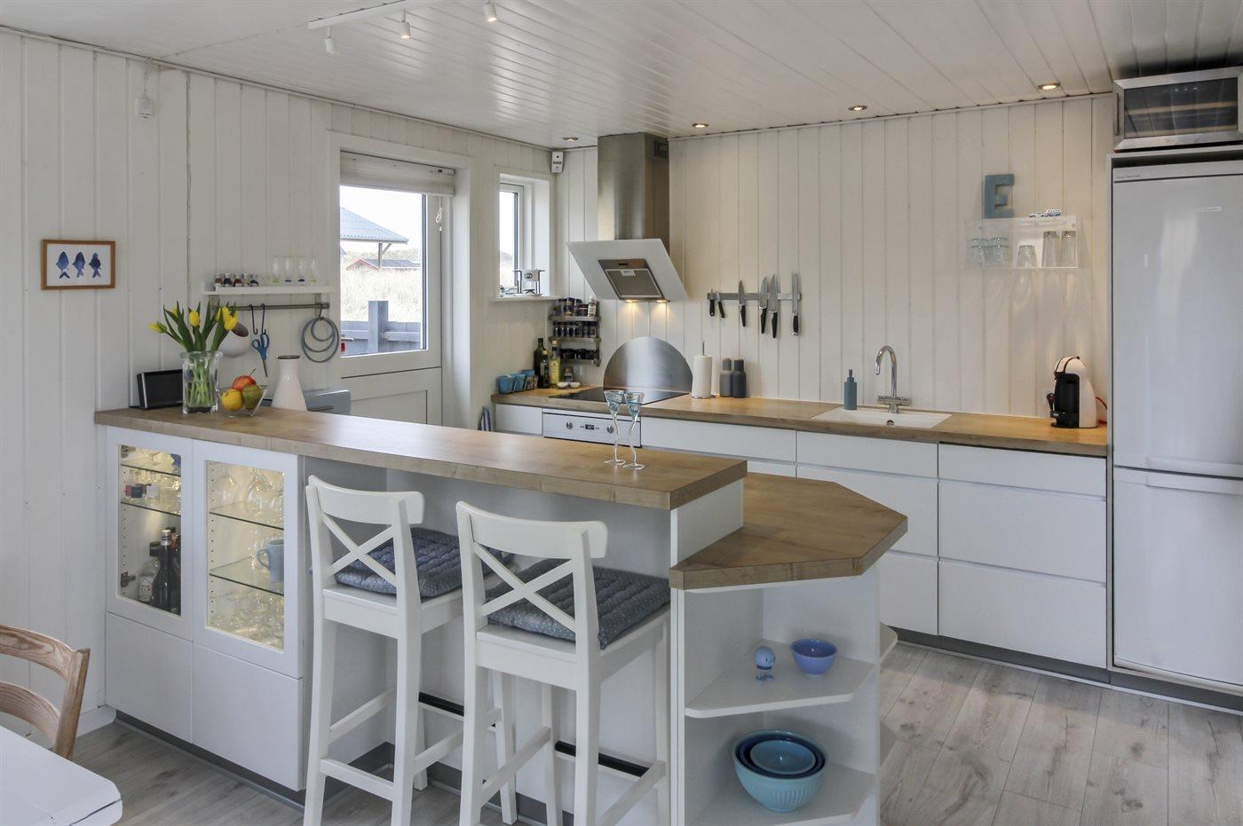 Køkkenet er udstyret med 1 køleskab. Der er 4 induktionskogeplader, varmluftovn, mikrobølgeovn samt opvaskemaskine.