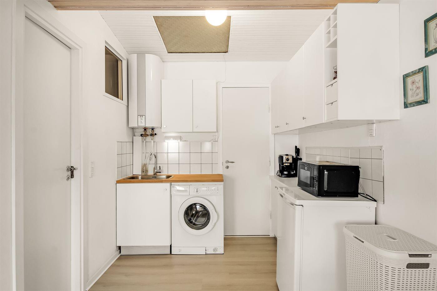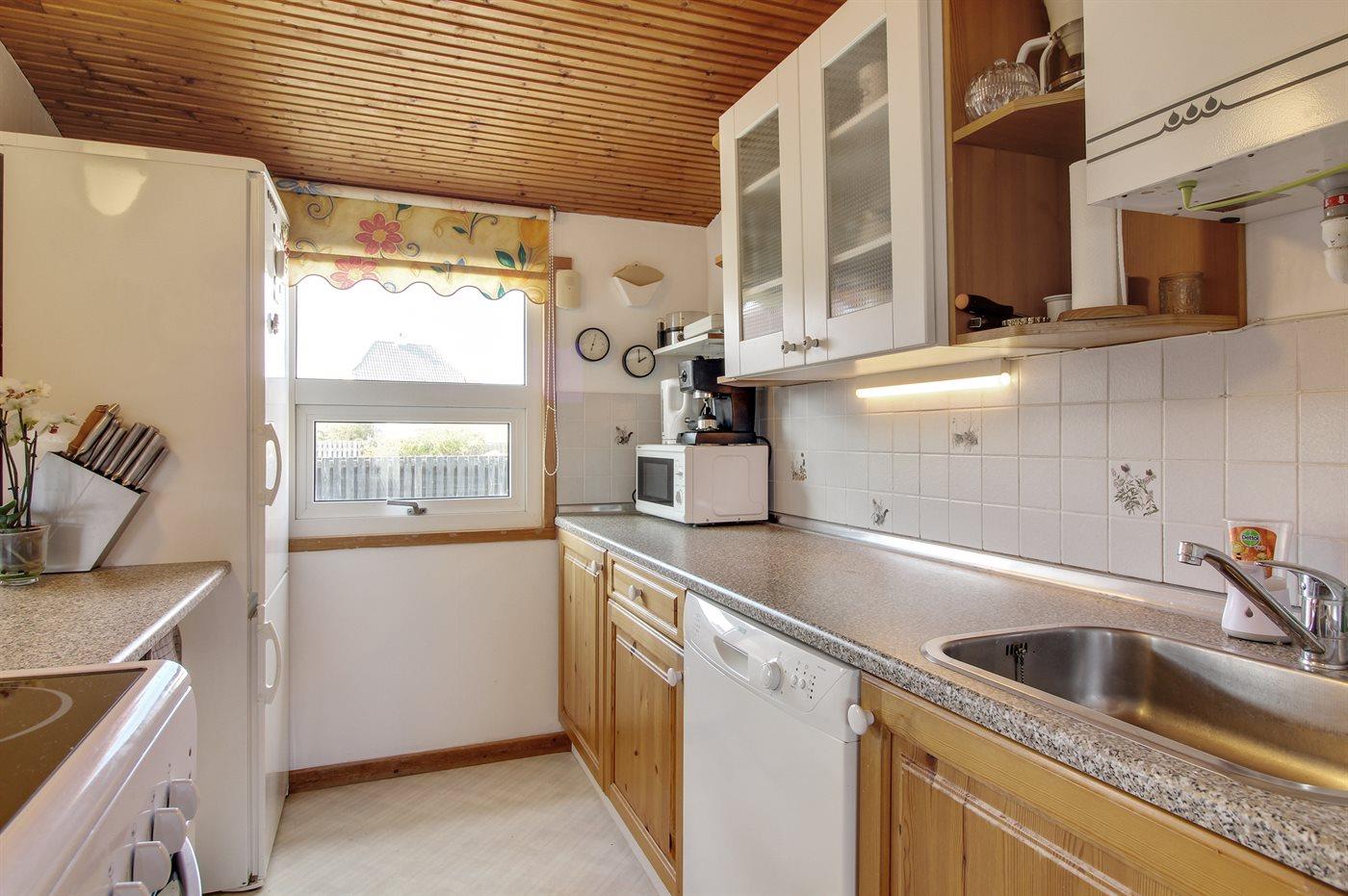 Køkkenet er udstyret med 2 køleskabe. Der er 4 keramiske kogeplader, varmluftovn, mikrobølgeovn samt opvaskemaskine.