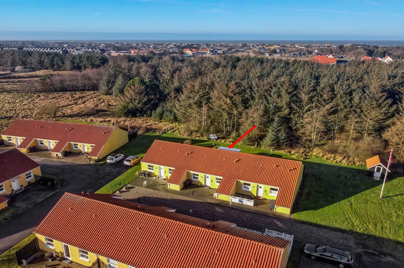 Ferieboligen er beliggende på en 192 m² stor naturgrund. Der er 900 m til havet. Nærmeste forretning er beliggende i en afstand af 500 m. Til ferieboligen hører åbent terrasseareal. Desuden er der overdækket terrasse. Grill til rådighed. Parkering ved ferieboligen.