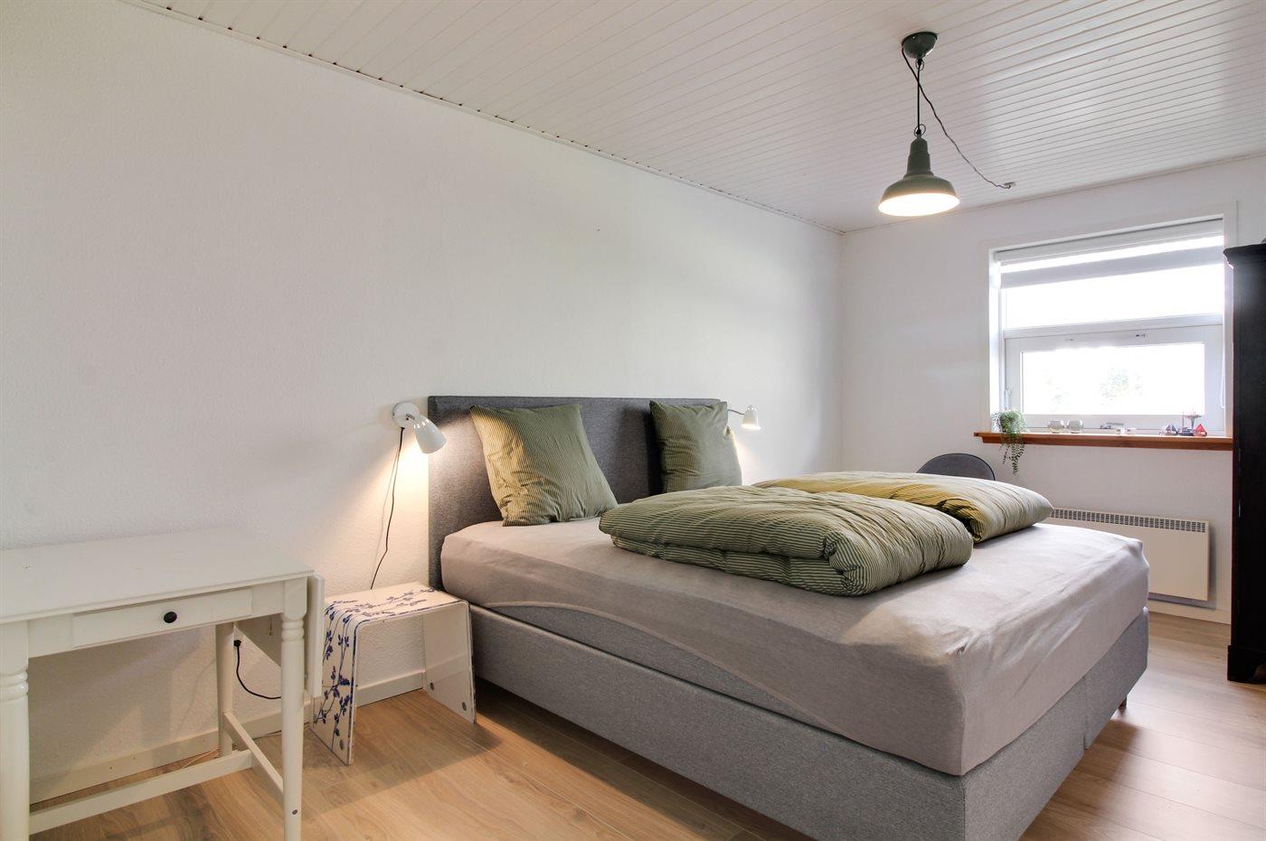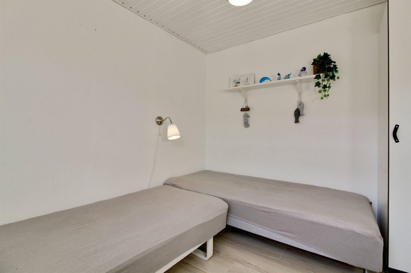 Der er i alt 2 soveværelser. Sovepladserne fordeler sig på: 2 sovepladser i dobbeltseng. 2 sovepladser i enkeltsenge. Derudover er der 1 stk. barneseng.