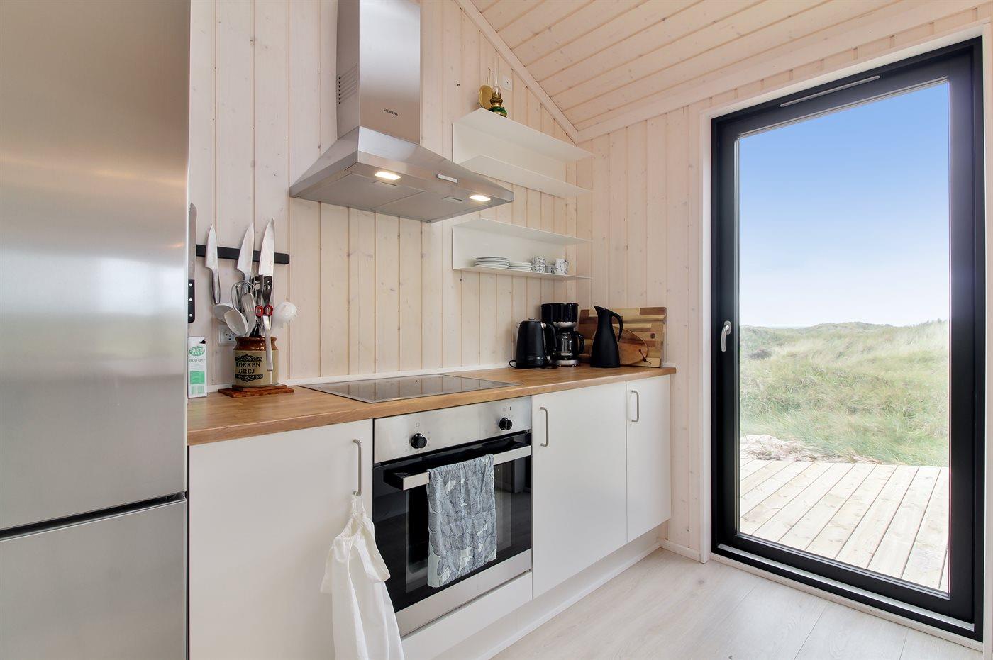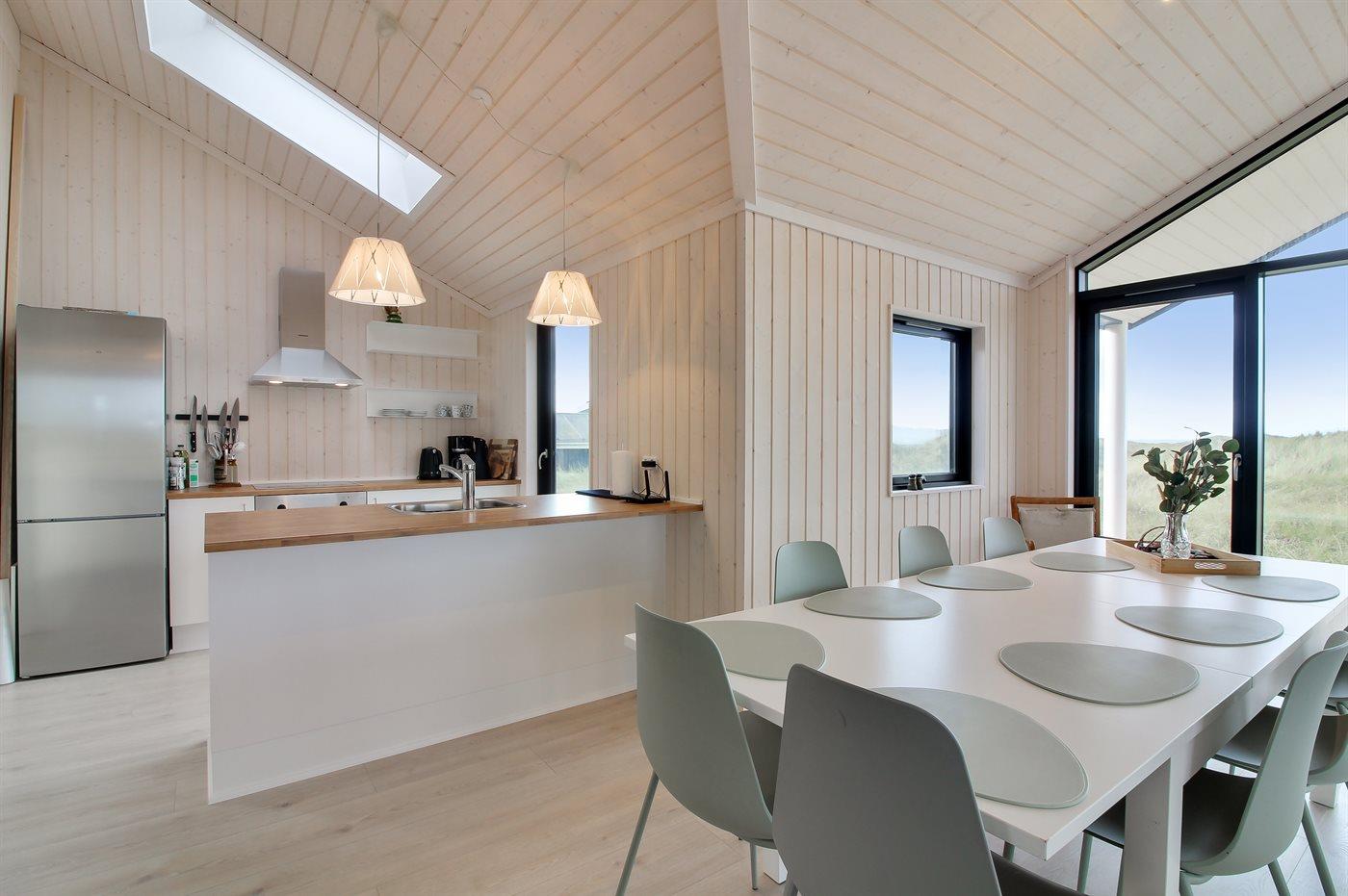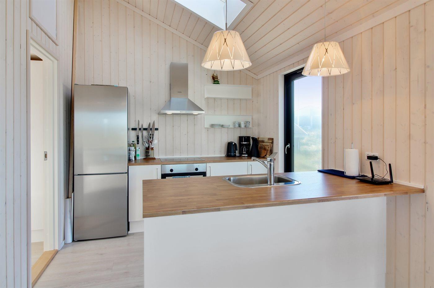 Køkkenet er udstyret med 1 køleskab. Der er 4 keramiske kogeplader, varmluftovn samt opvaskemaskine.