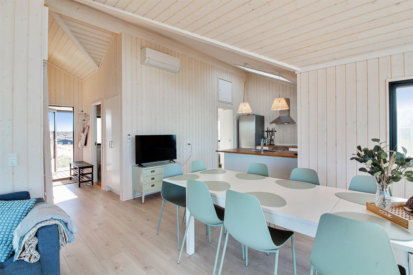 Sommerhuset egner sig til 6 personer. Ferieboligen er på 77 m² og er bygget i 2023. Det er ikke tilladt at medbringe husdyr. Ferieboligen er udstyret med 1 energibesparende luft til luft varmepumpe. Ferieboligen har vaskemaskine. Frysekapacitet på 60 liter. Der er desuden brændeovn.