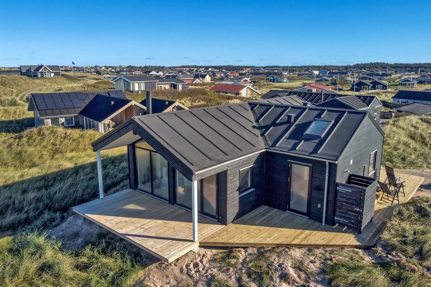 Nybygget sommerhus på klitternes top med panoramaudsigt over Vesterhavet og kort afstand til Løkken by.