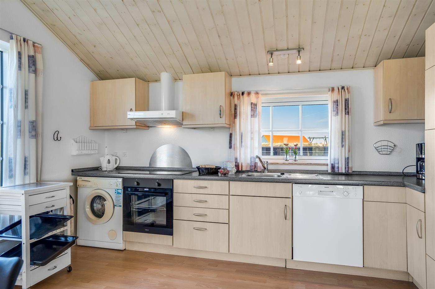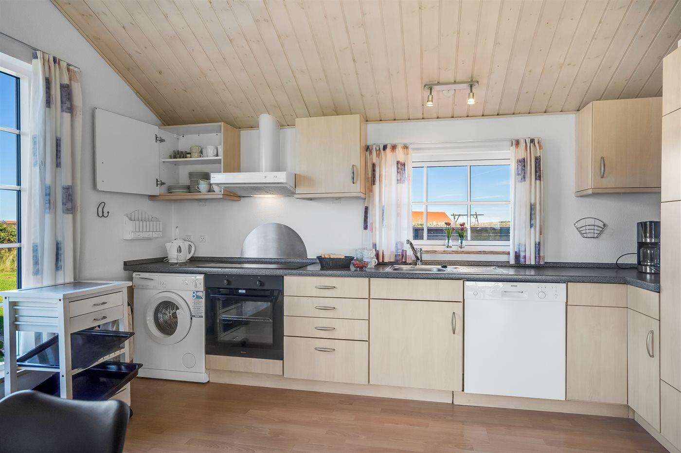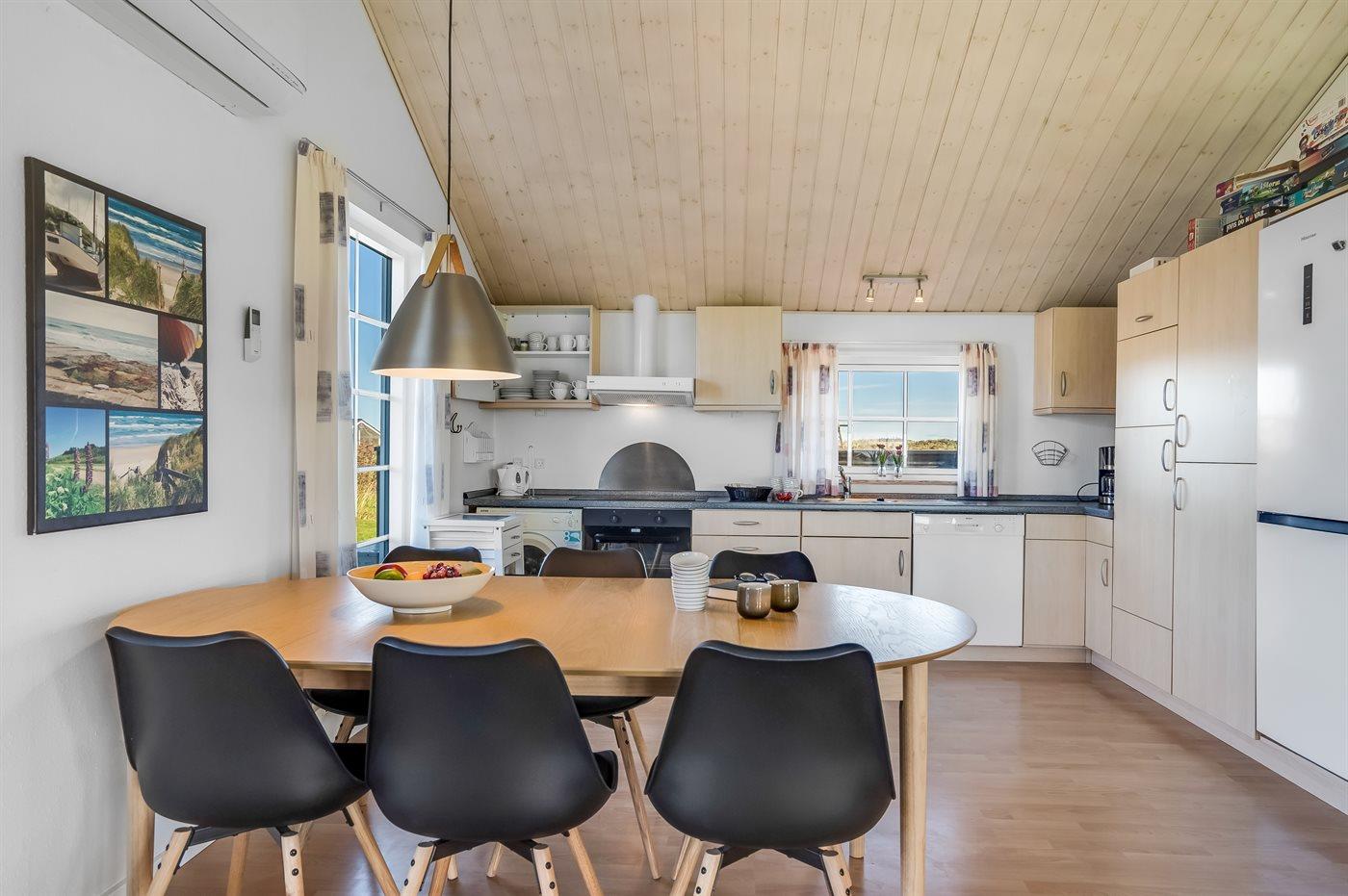 Køkkenet er udstyret med 1 køleskab. Der er 4 induktionskogeplader, varmluftovn, mikrobølgeovn samt opvaskemaskine.