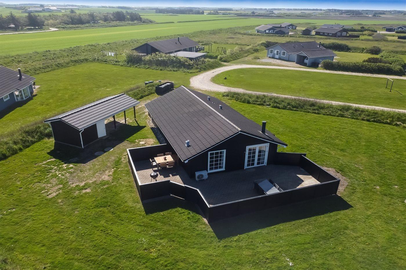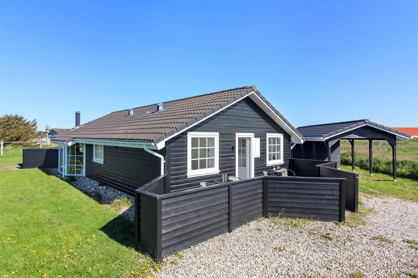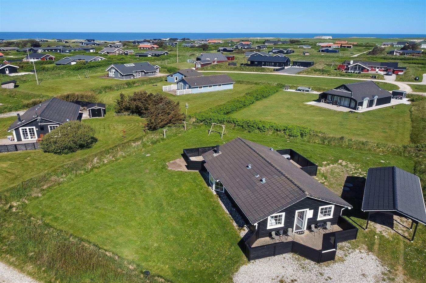 Ferieboligen er beliggende på en 1260 m² stor naturgrund. Der er 600 m til havet. Nærmeste forretning er beliggende i en afstand af 600 m. Til ferieboligen hører 85 m² lukket terrasse. Der er redskabsrum. Gynge. Grill til rådighed. Der er carport til rådighed. Der er installeret stik til opladning af elbil. CEE stik. Parkering ved ferieboligen.