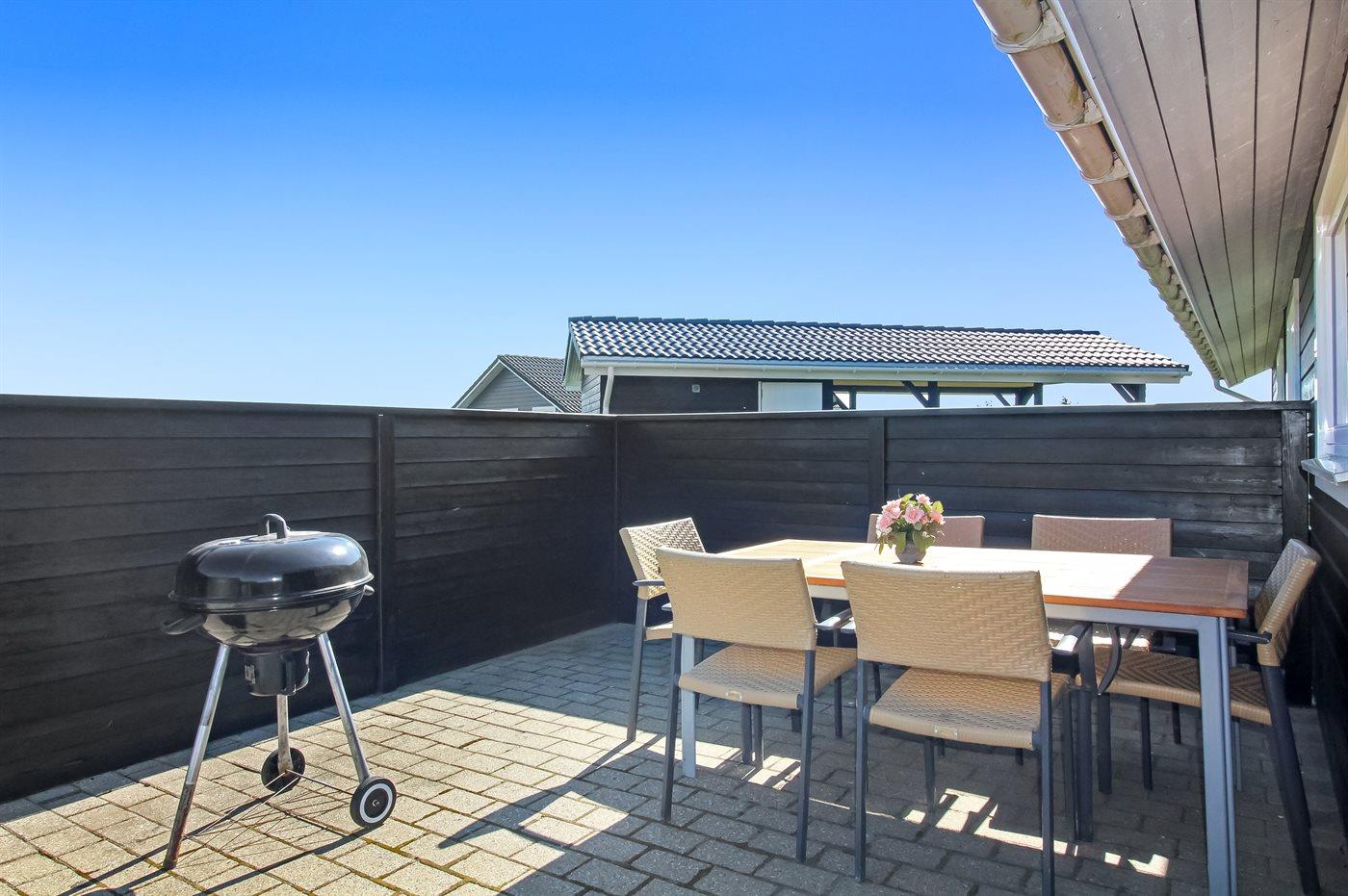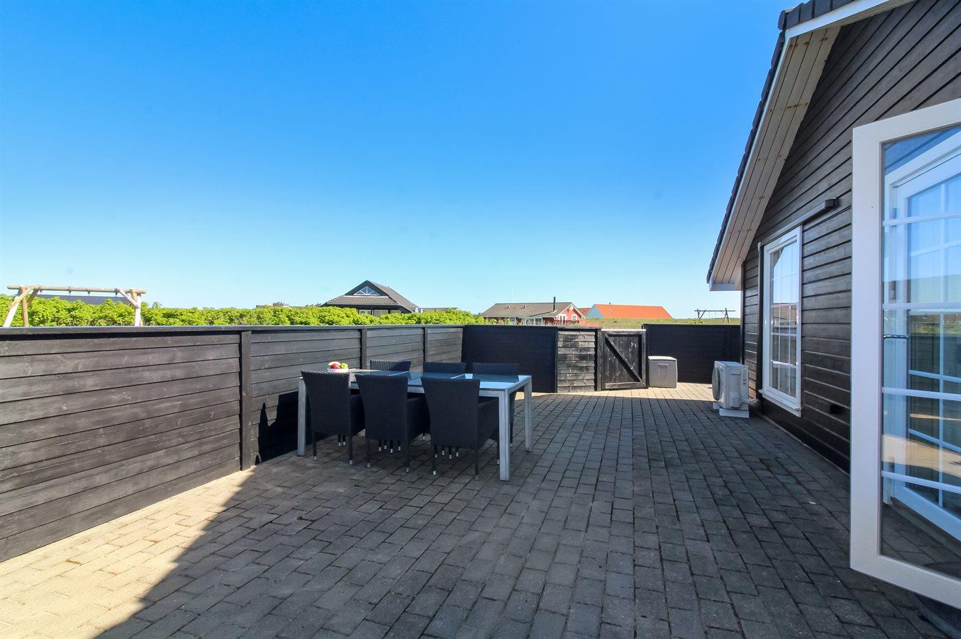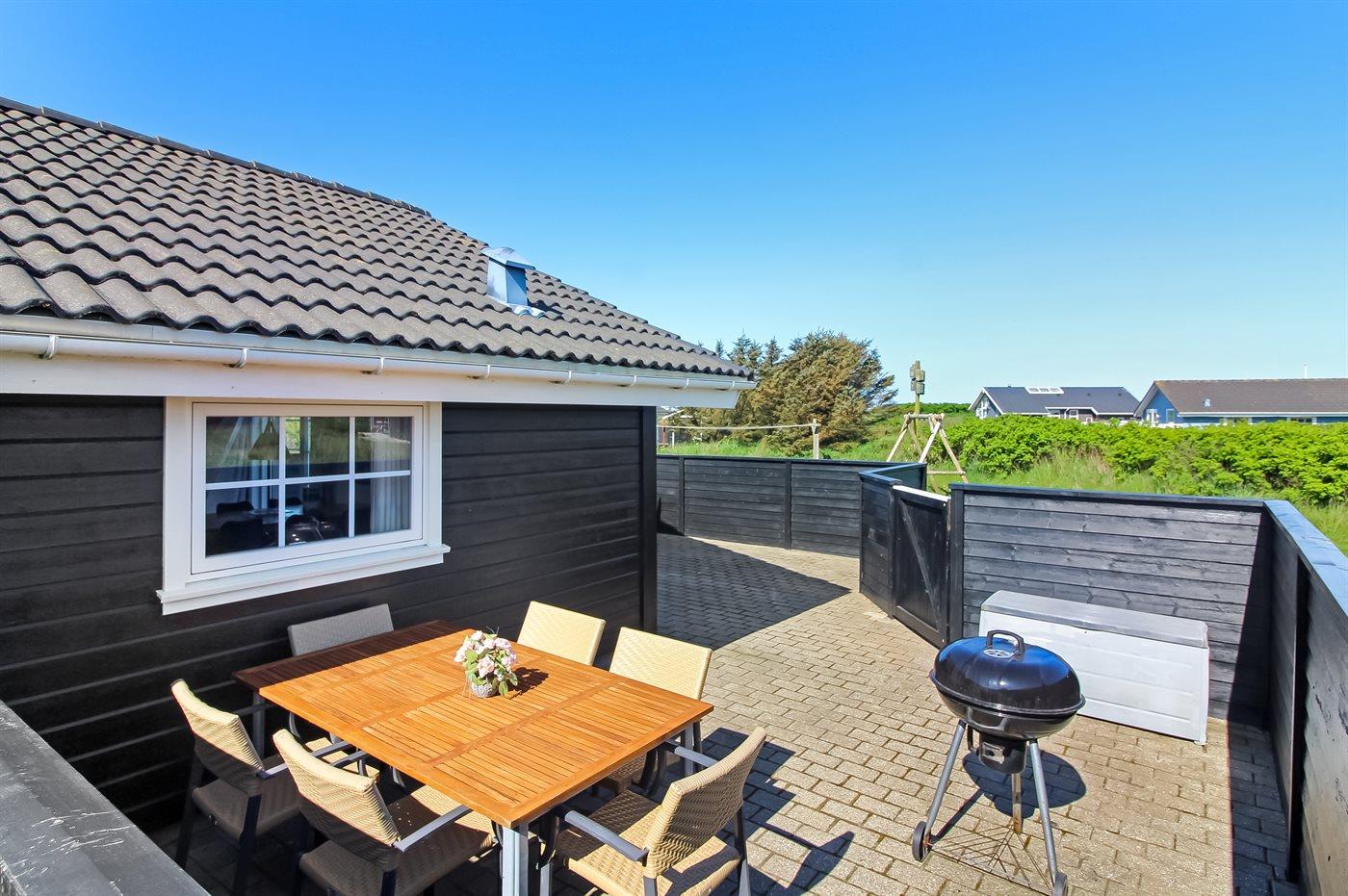 Ferieboligen er beliggende på en 1260 m² stor naturgrund. Der er 600 m til havet. Nærmeste forretning er beliggende i en afstand af 600 m. Til ferieboligen hører 85 m² lukket terrasse. Der er redskabsrum. Gynge. Grill til rådighed. Der er carport til rådighed. Der er installeret stik til opladning af elbil. CEE stik. Parkering ved ferieboligen.