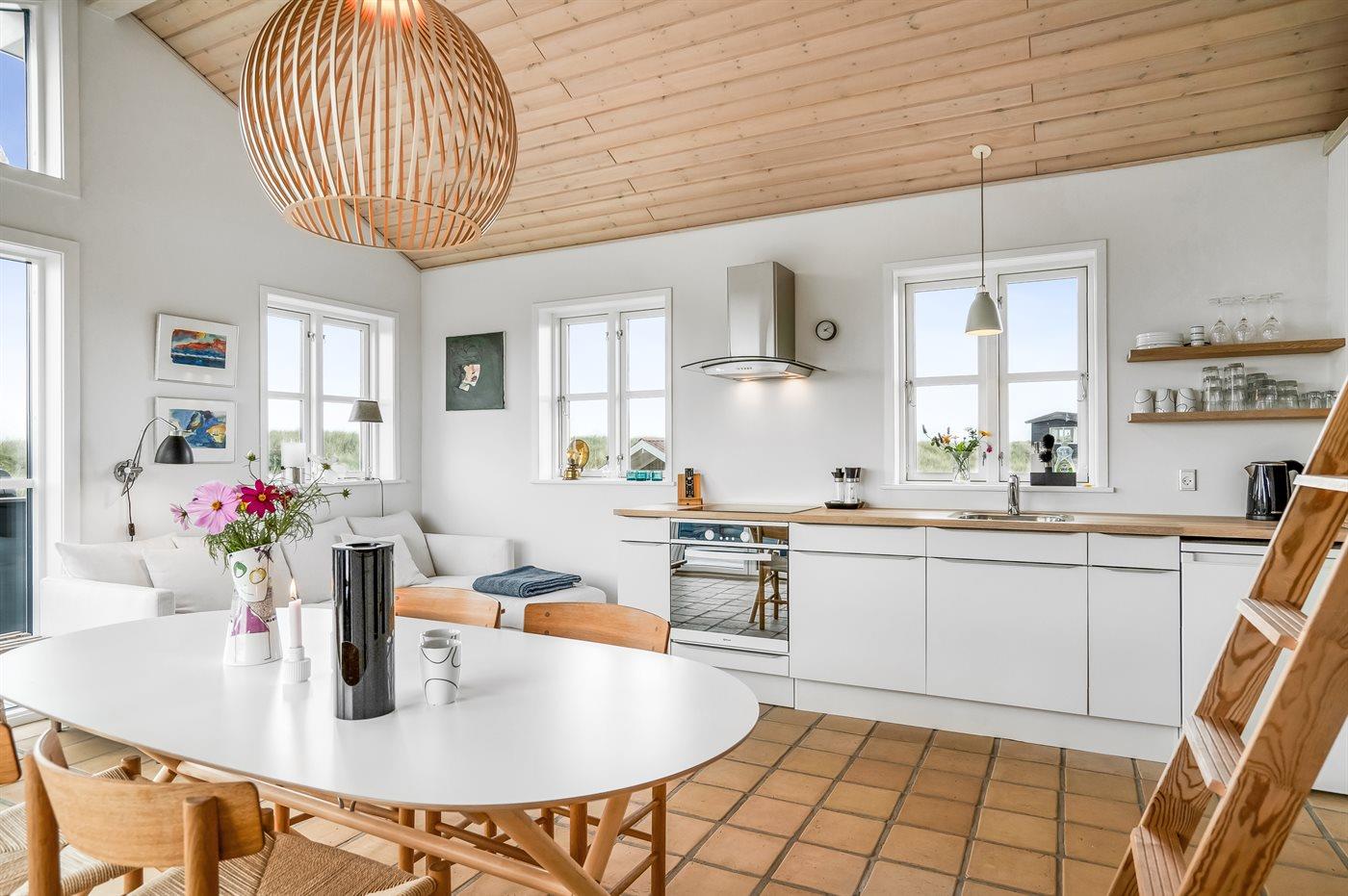 Køkkenet er udstyret med 1 køleskab. Der er 4 keramiske kogeplader, varmluftovn.