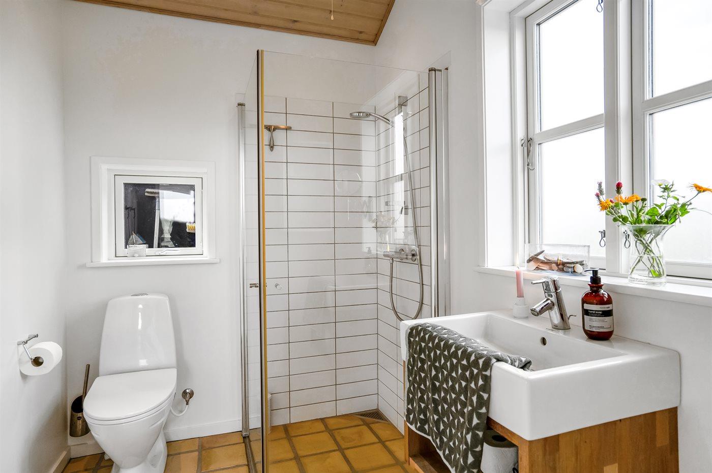 Der er 1 badeværelse med bruseniche og 1 toilet.. Der er gulvvarme på 1 badeværelse.