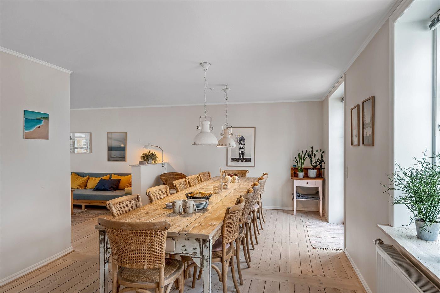 Køkkenet er udstyret med 1 køleskab. Der er 4 induktionskogeplader, varmluftovn, mikrobølgeovn samt opvaskemaskine Der er gulvvarme i køkkenet.