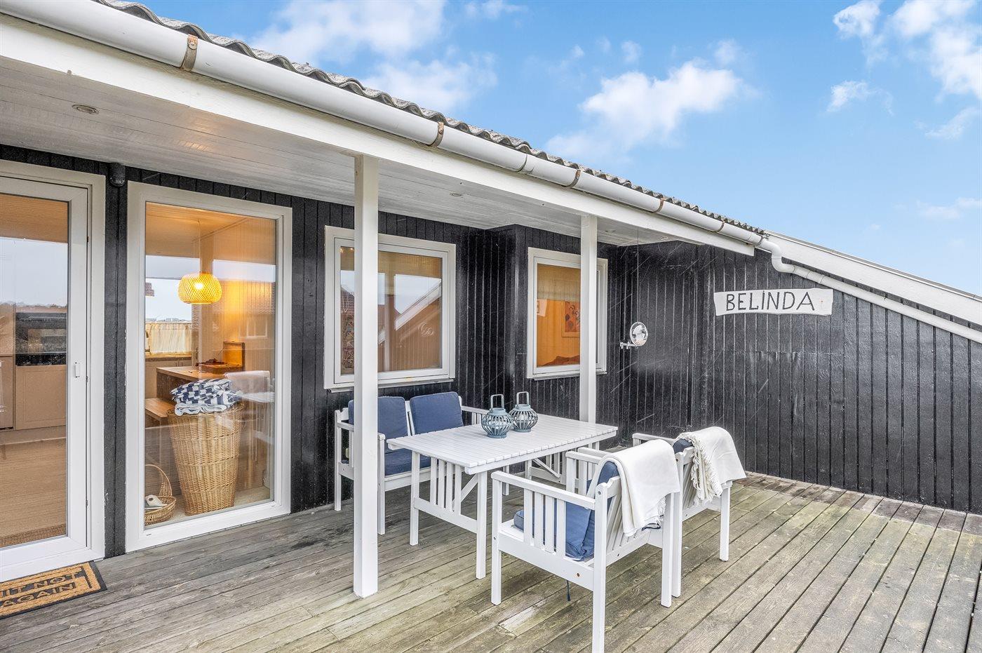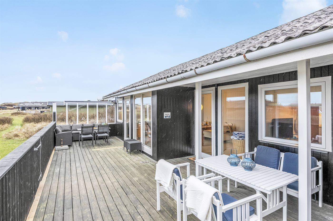 Ferieboligen er beliggende på en 1316 m² stor naturgrund. Der er 250 m til havet. Nærmeste forretning er beliggende i en afstand af 2400 m. Der er en golfbane i en afstand af 5600 m. Til ferieboligen hører åbent terrasseareal. Desuden er der overdækket terrasse. Der er redskabsrum. Der ligger en legeplads i en afstand af 100 m. Der er installeret stik til opladning af elbil. Type 2 stik. Med 11 kW ladeeffekt. Parkering ved ferieboligen.