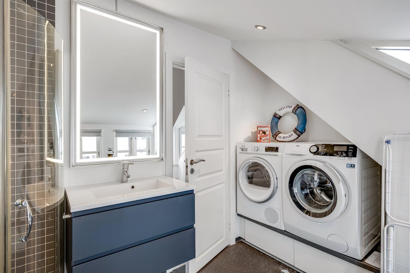 Der er 2 badeværelser med bruseniche og 2 toiletter. Der er gulvvarme på 1 badeværelse.