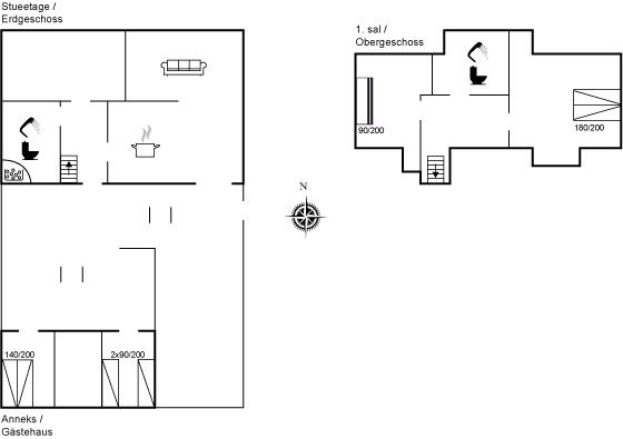 Der er i alt 4 soveværelser. Sovepladserne fordeler sig på: 4 sovepladser i dobbeltsenge. 2 sovepladser i enkeltsenge. 2 sovepladser i køjeseng. 4 af disse sovepladser befinder sig i anneks.