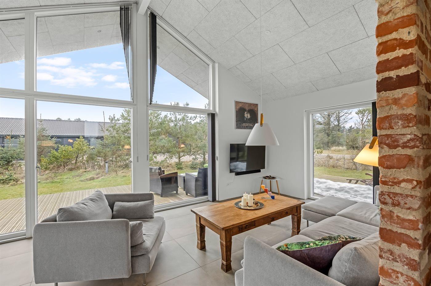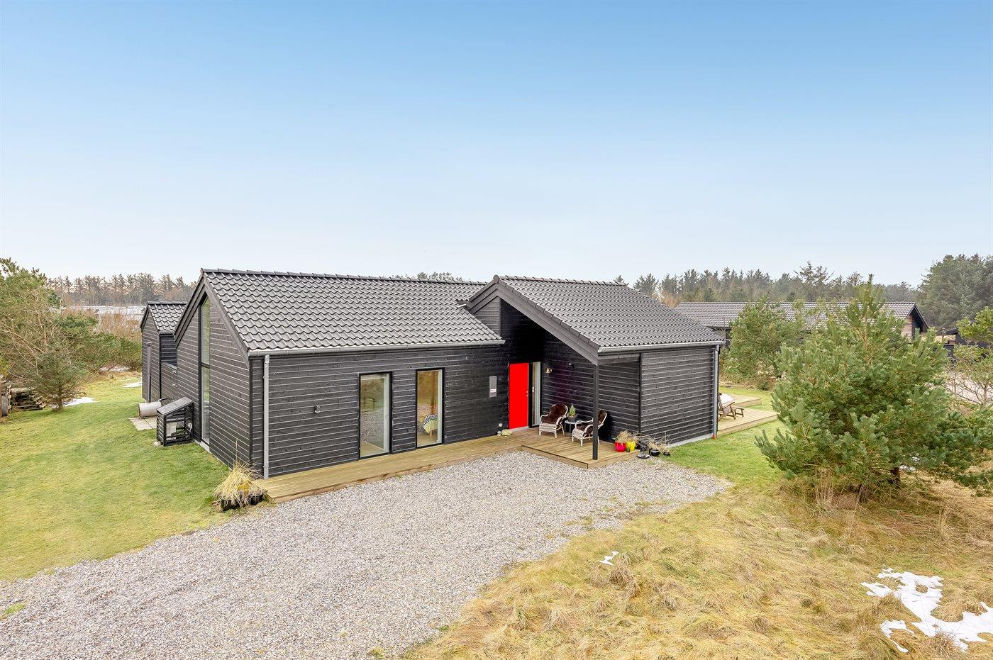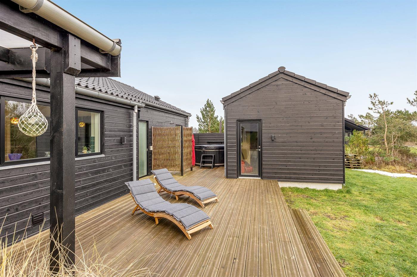 Nyt arkitekttegnet sommerhus nær Løkken med spa, sauna og stor naturgrund, perfekt til afslapning og familieferie.